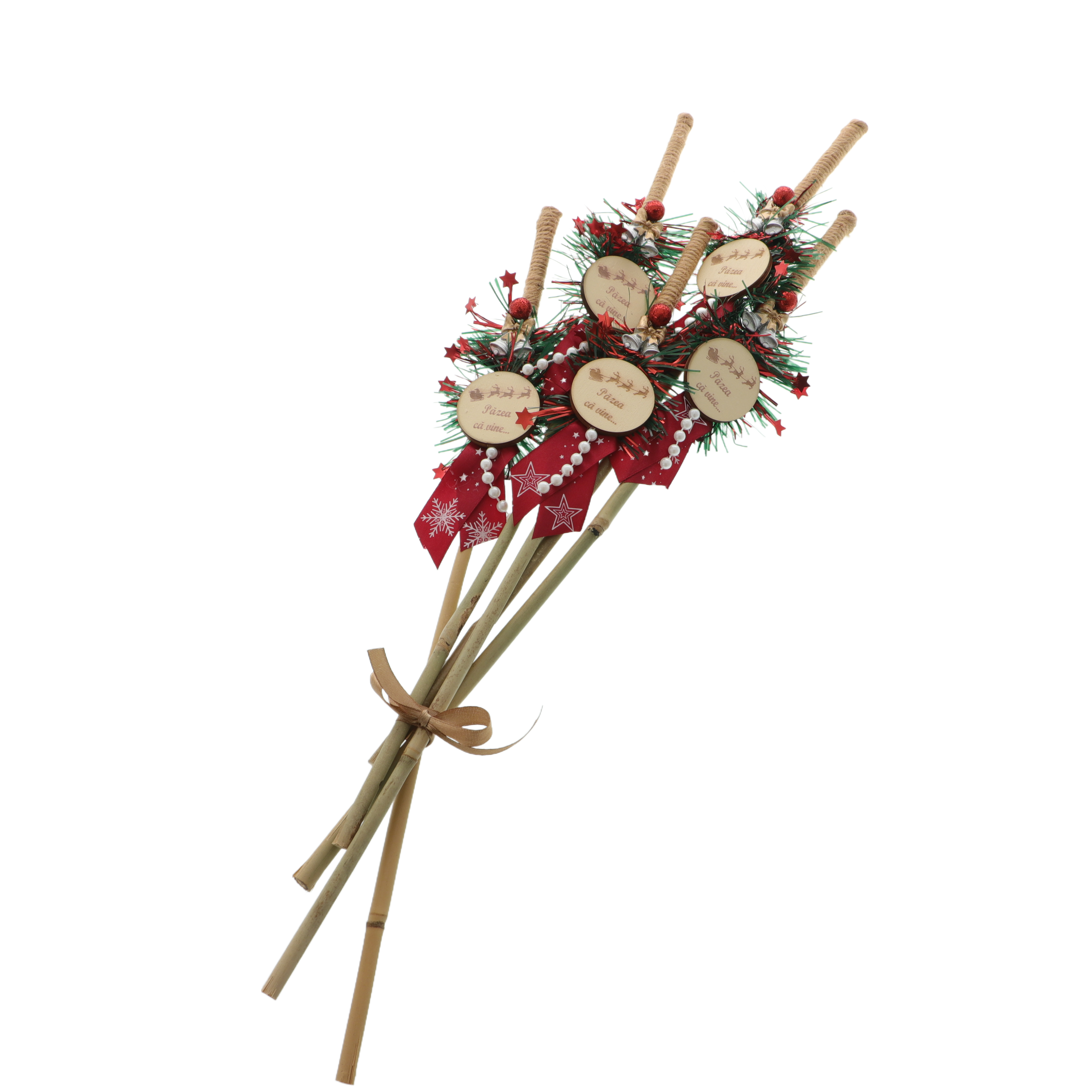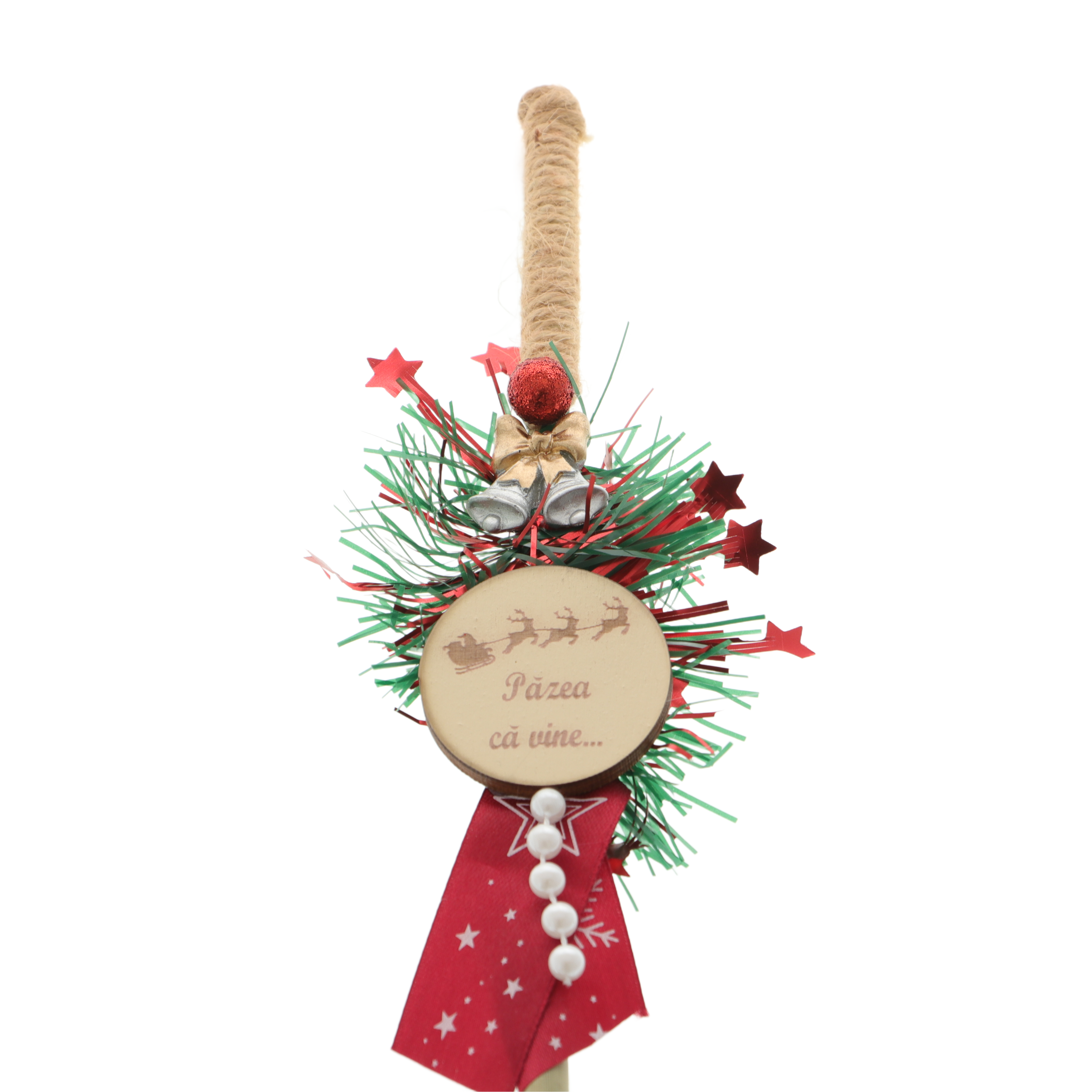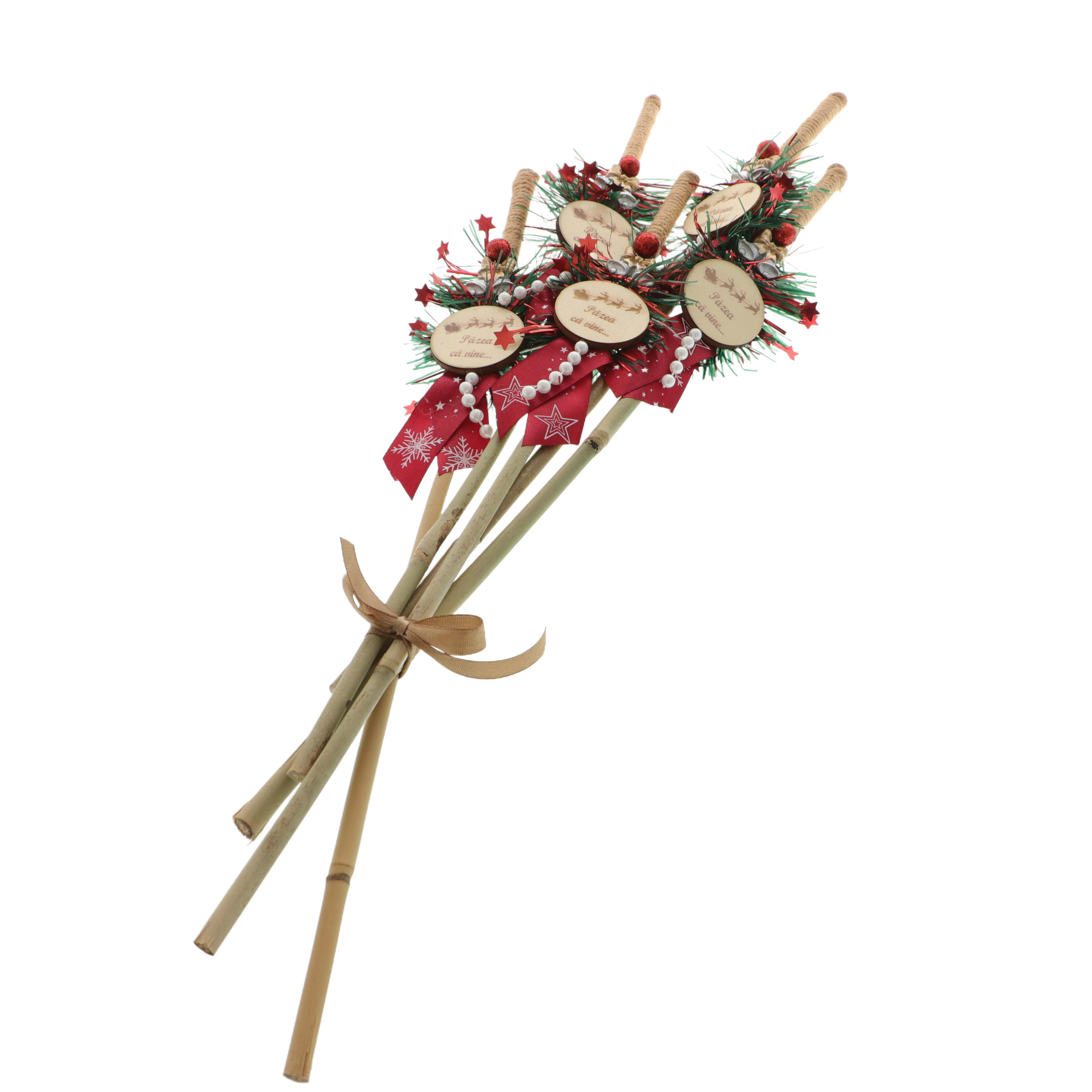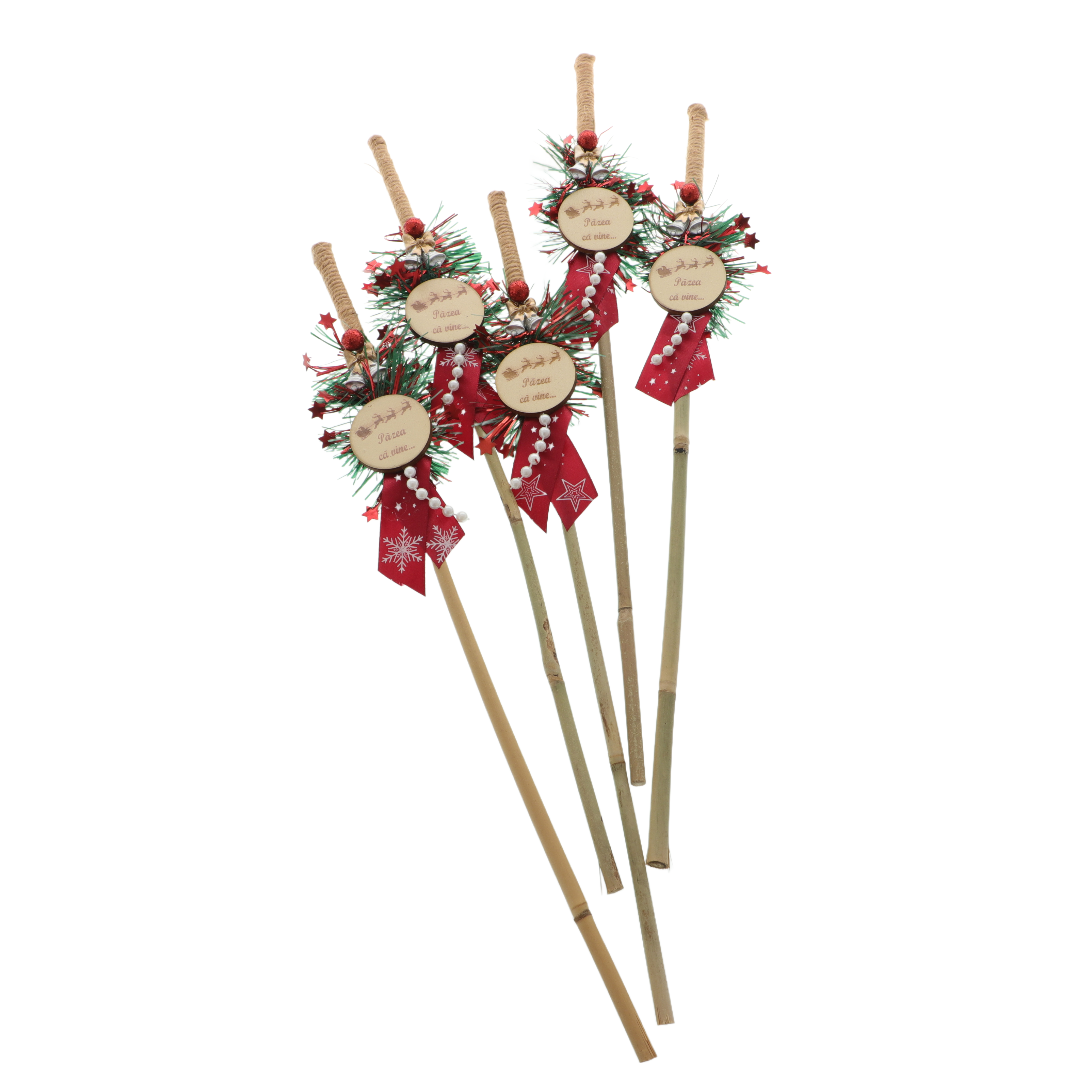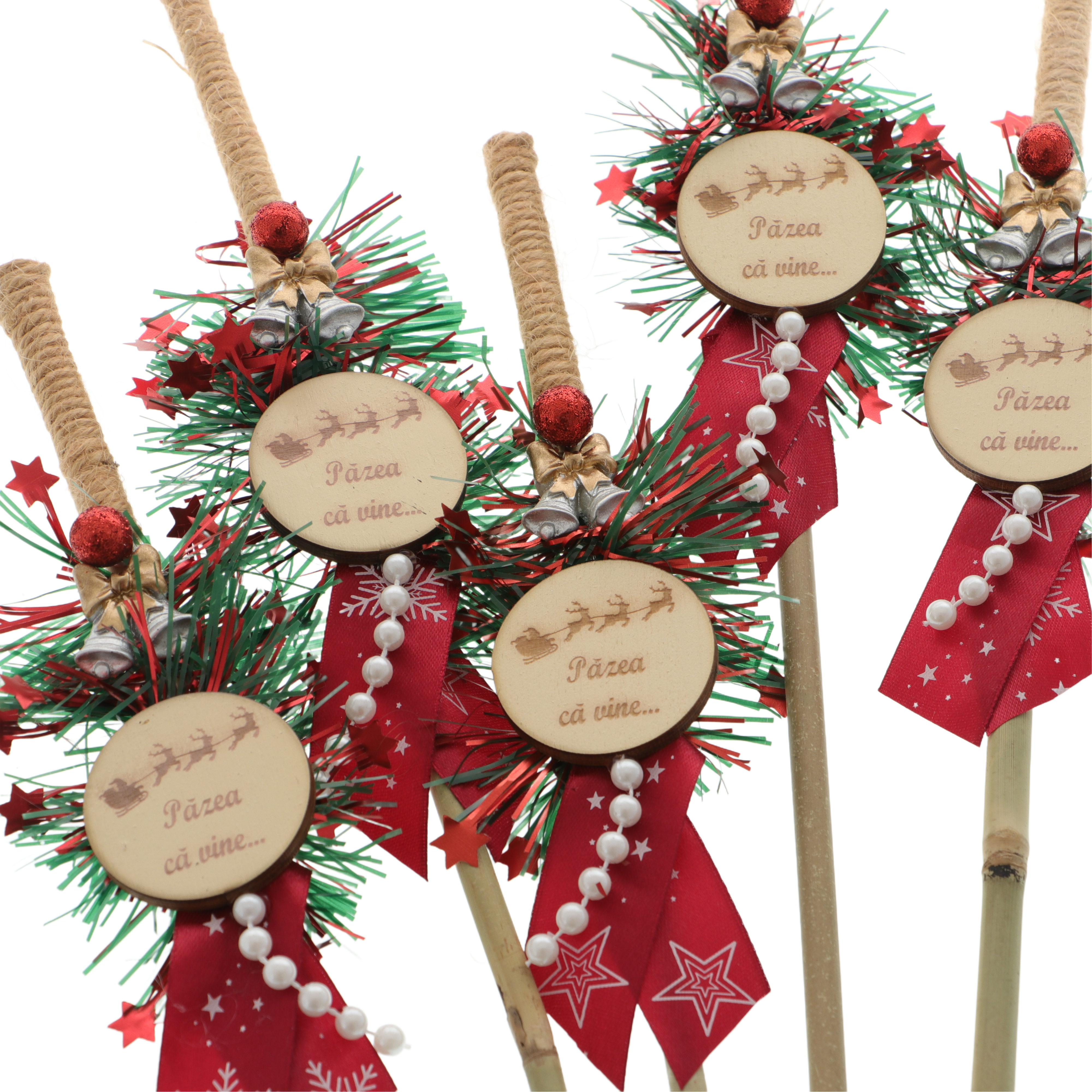 Adaugă un strop de umor și magie sărbătorilor de iarnă cu setul de Bețe Moș Nicolae Bambus „Păzea că vine!” – un decor original, realizat manual cu atenție la fiecare detaliu.