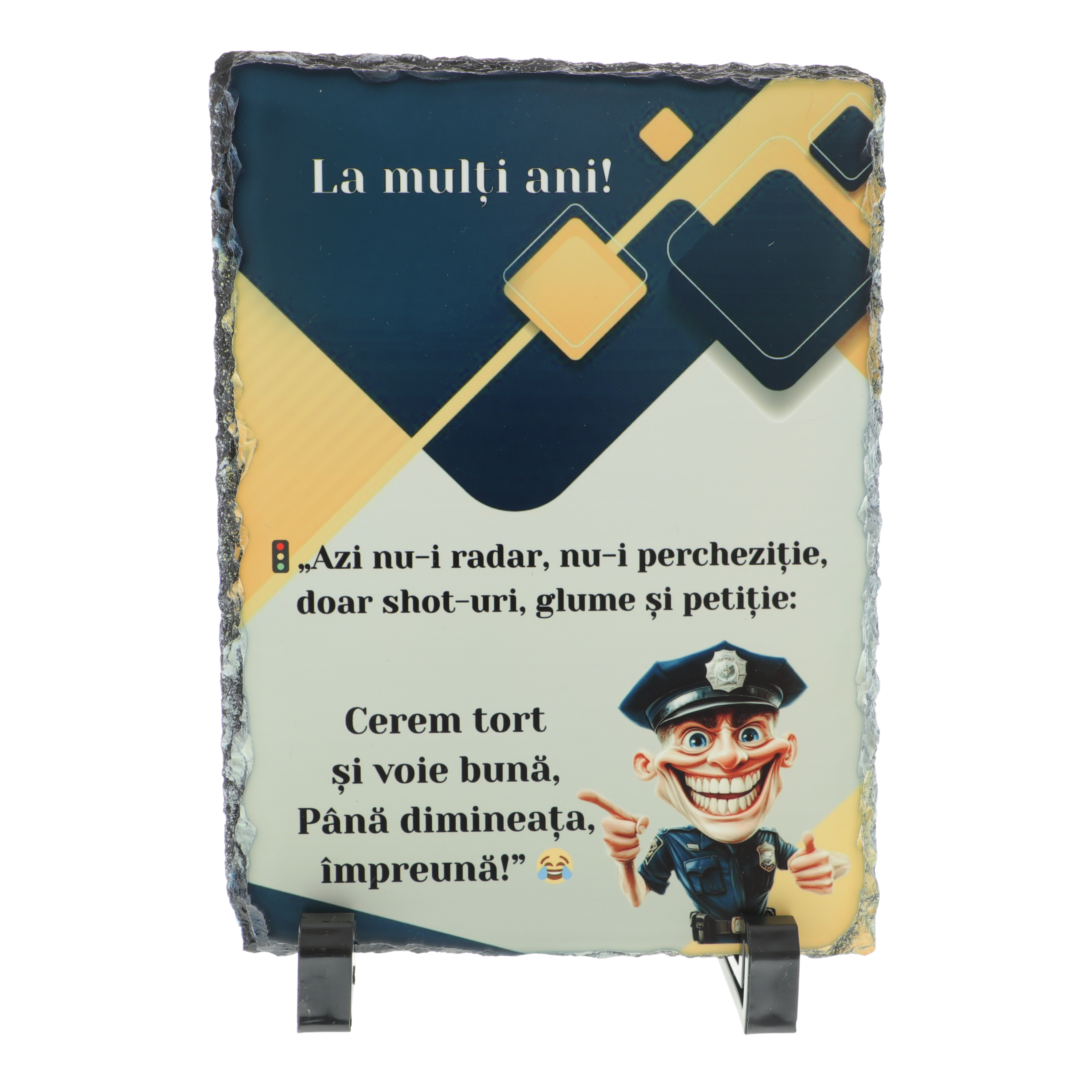 Surprinde un polițist drag cu un cadou personalizat unic și plin de umor! Această plachetă din piatră naturală (ardezie) este un cadou haios pentru polițist, ideal pentru ziua de naștere, onomastică sau orice altă ocazie specială.