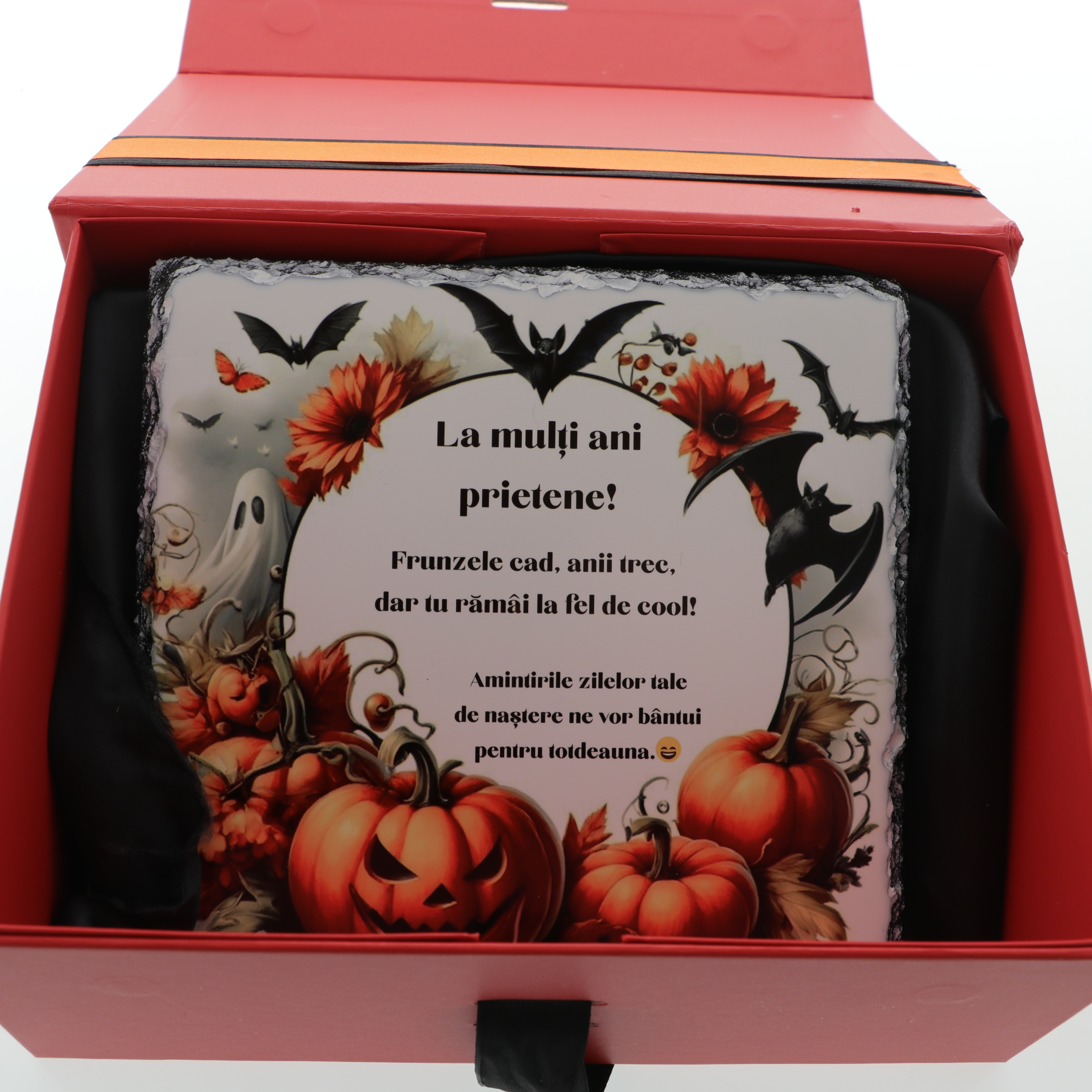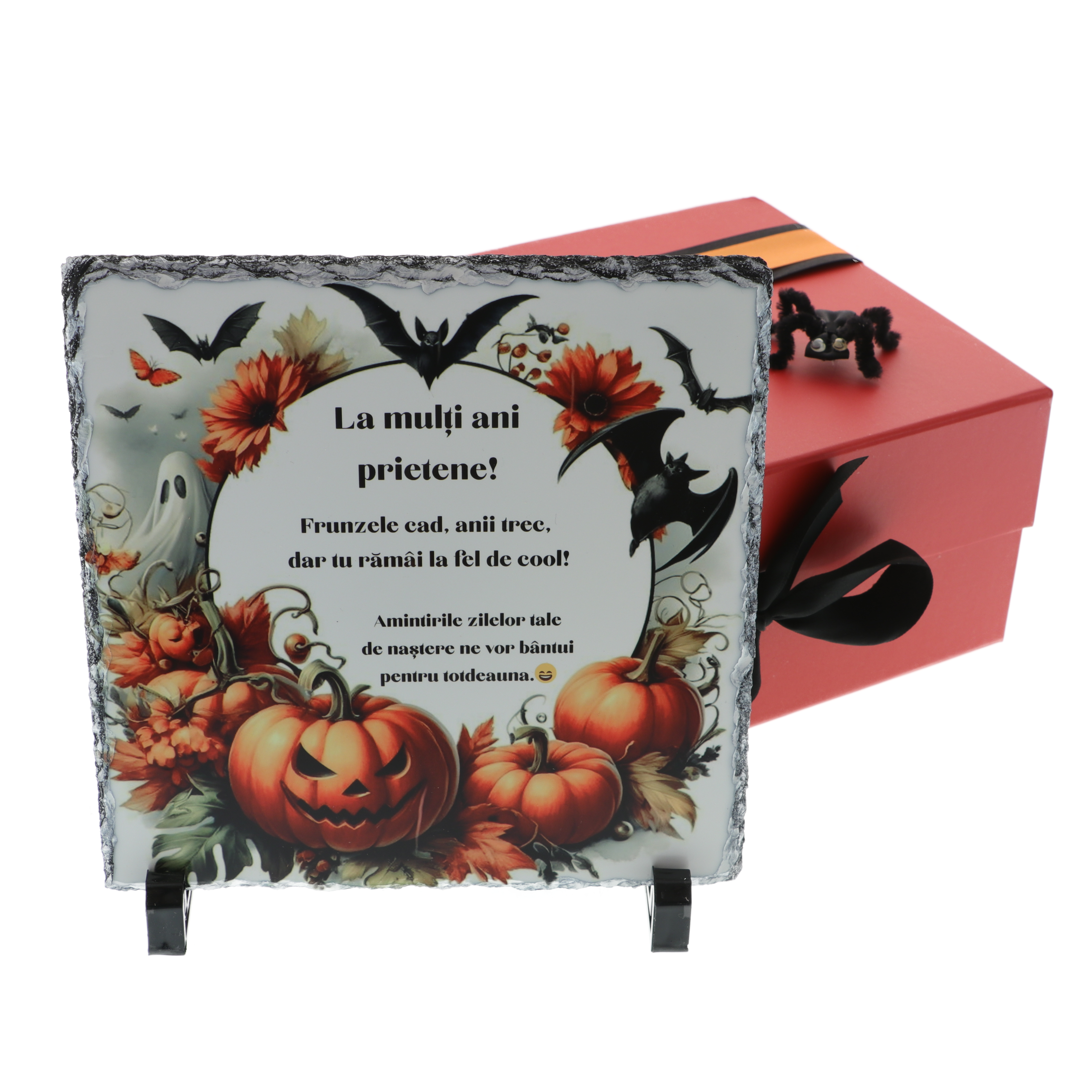 🍂 Cadou Prieten Toamnă Personalizat pe Piatră Ardezie – Plachetă cu Mesaj Amuzant și Design de Halloween