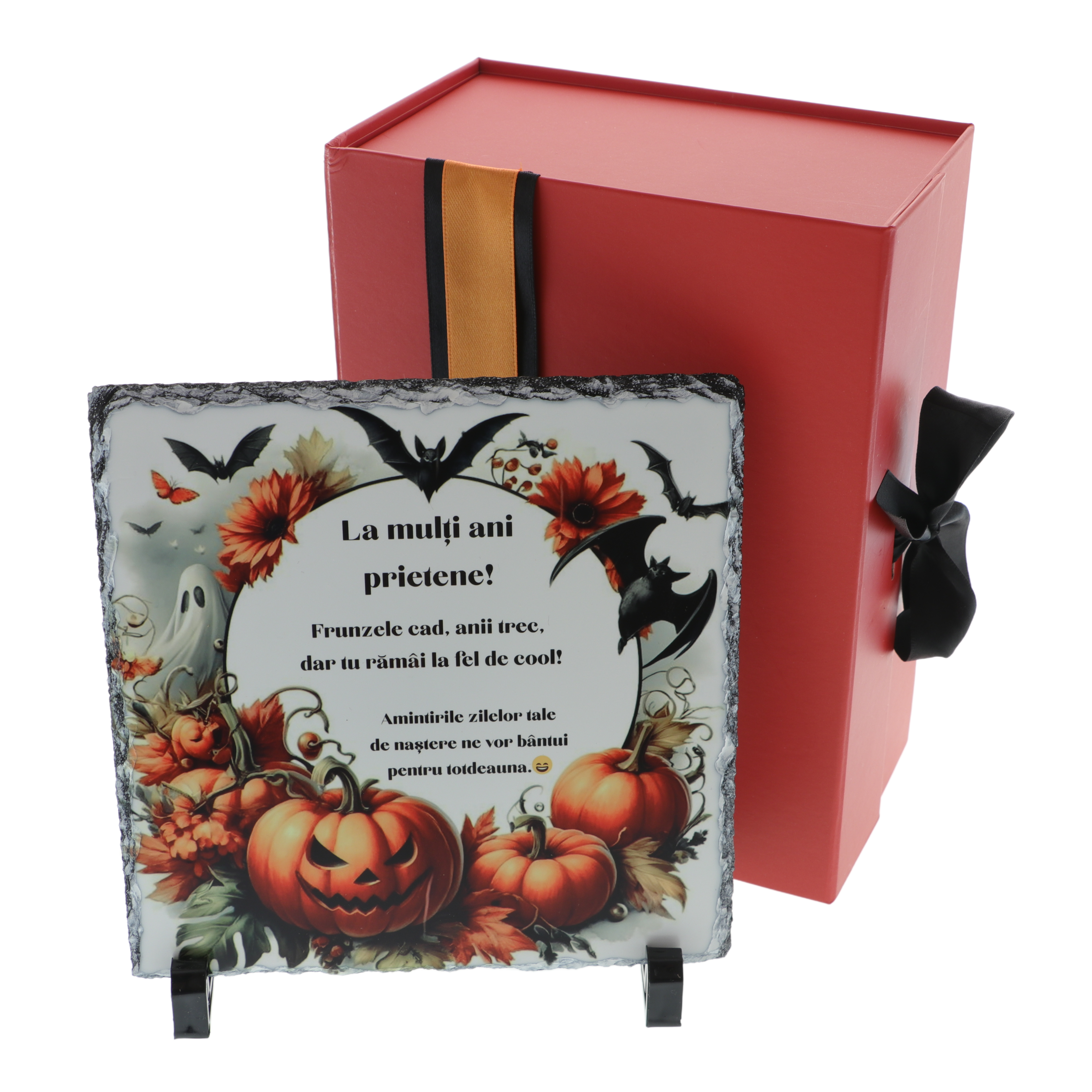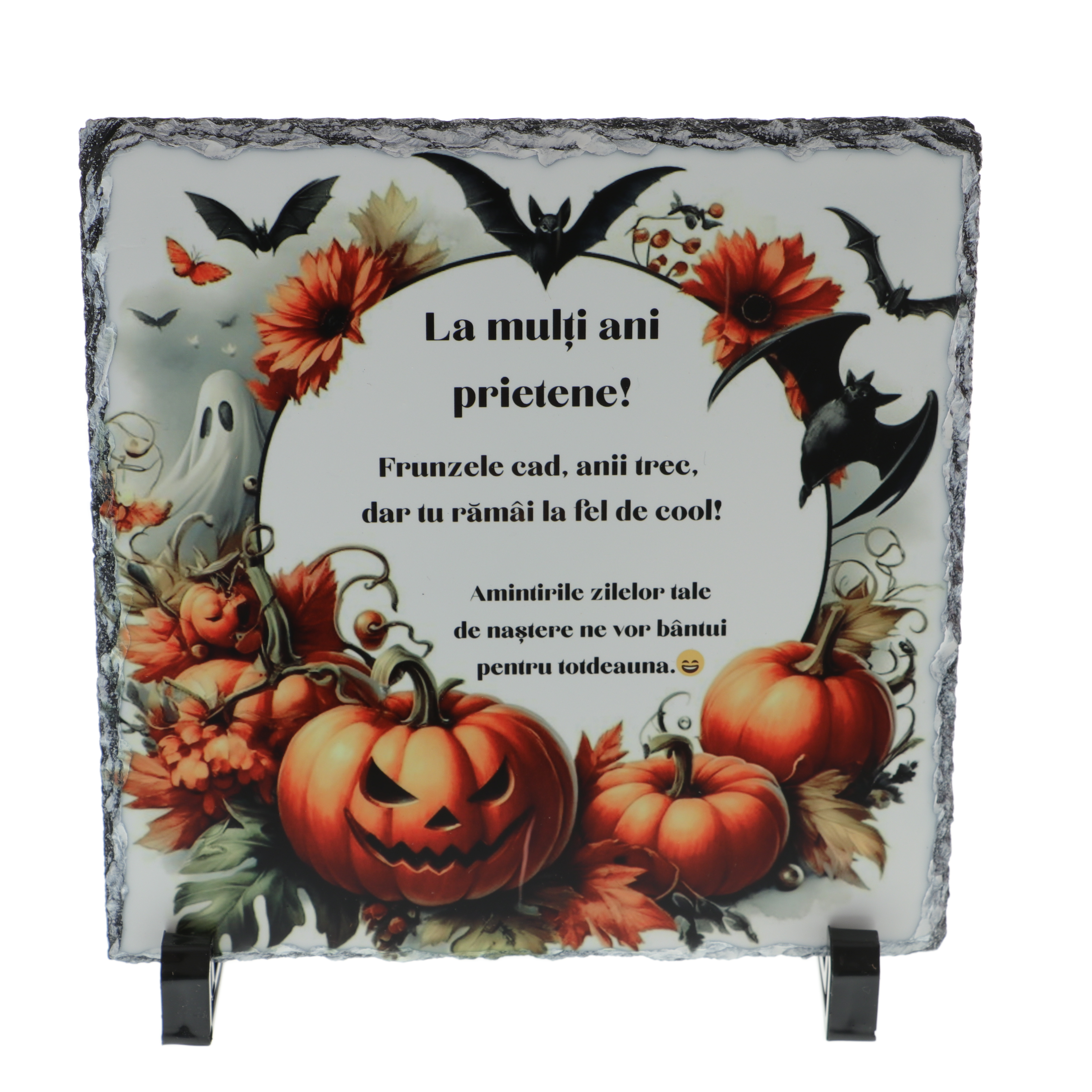Surprinde-ți prietenul cu un cadou de toamnă memorabil – o plachetă personalizată pe piatră ardezie, decorată cu elemente specifice sezonului, care combină umorul, prietenia și spiritul festiv. Ideală pentru zile de naștere sau pentru a aduce un zâmbet în sezonul frunzelor căzătoare și al serilor răcoroase de toamnă.