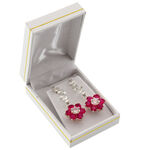 Cercei din argint, cu sapte cristale asezate in forma unei flori cu petale din zirconia de culoare ciclam. Floarea este agatata de o tija decorata cu frunzulite. Cutia in care se aseaza bijuteria poate fi personalizata prin aplicarea unei placute gravate cu mesaj.