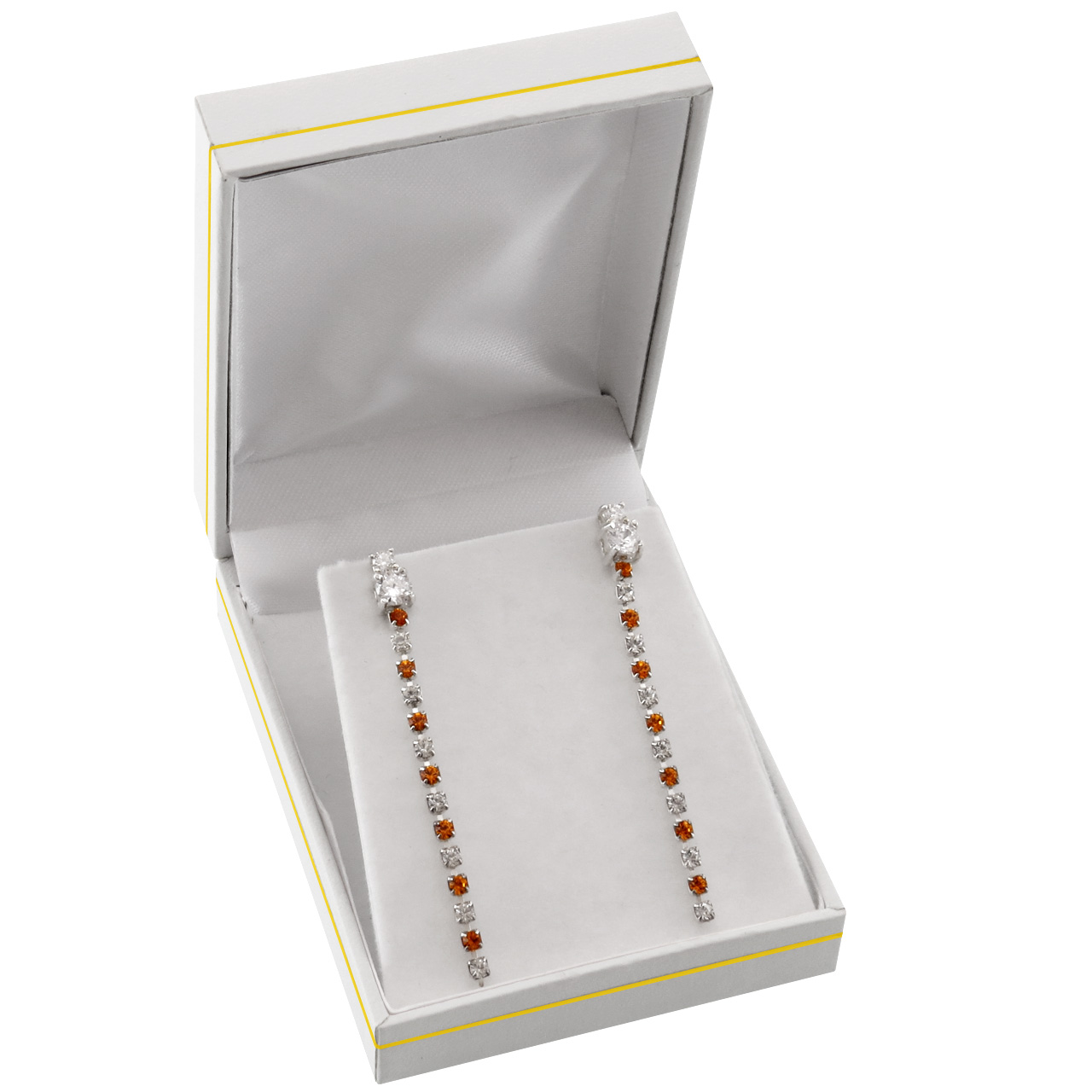 Cercei strasuri realizati din argint 925 cu cristale stralucitoare colorate. Cerceii sunt eleganti si potriviti pentru ocazii deosebite. Au o lungime de 5.5cm si sunt asezati in cutie frumoasa de cadouri. Aceasta cutie poate purta si un mesaj gravat pe o placuta. Sistemul de prindere este cu surub.