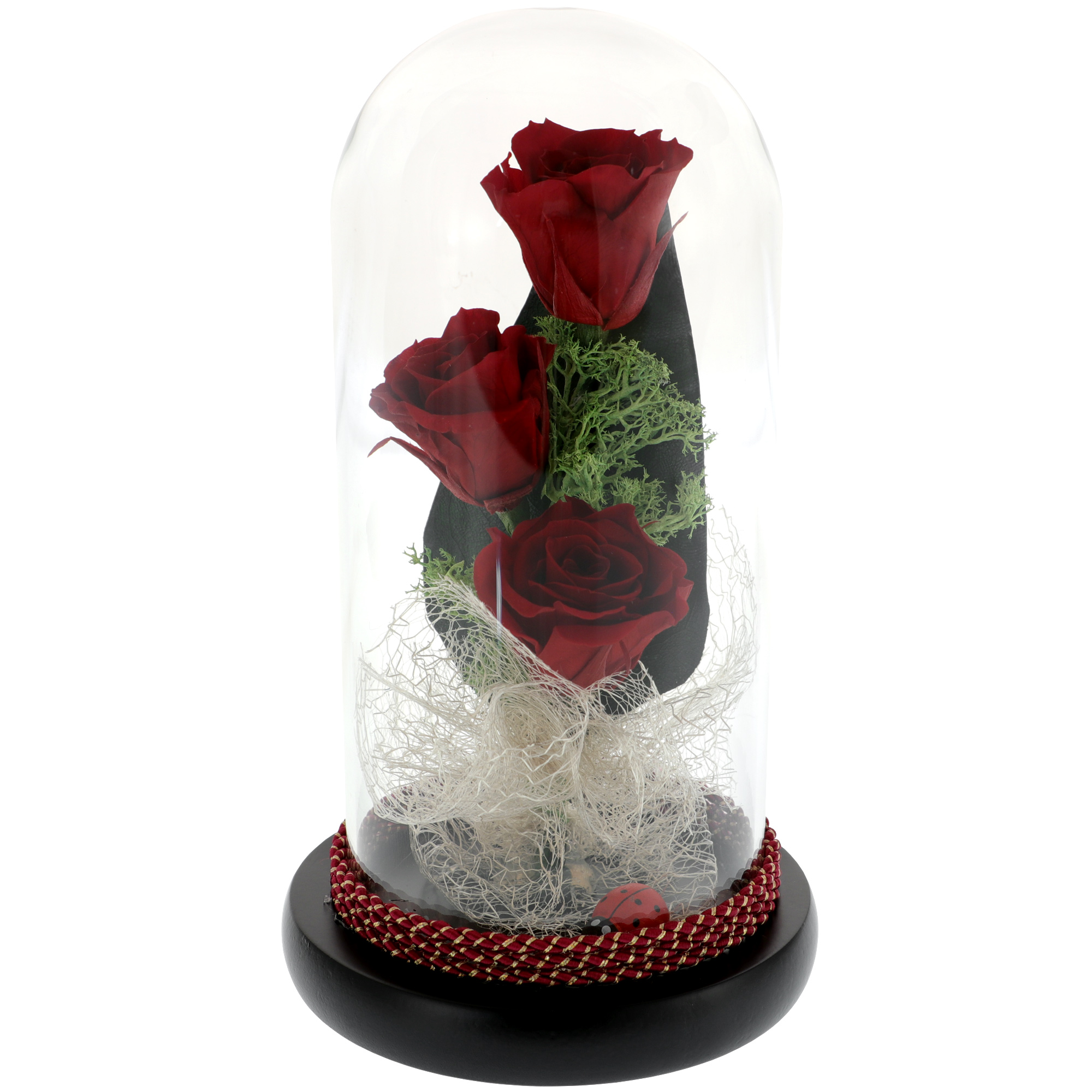 Pink cryogenic rose under glass dome with the message Happy Birthday