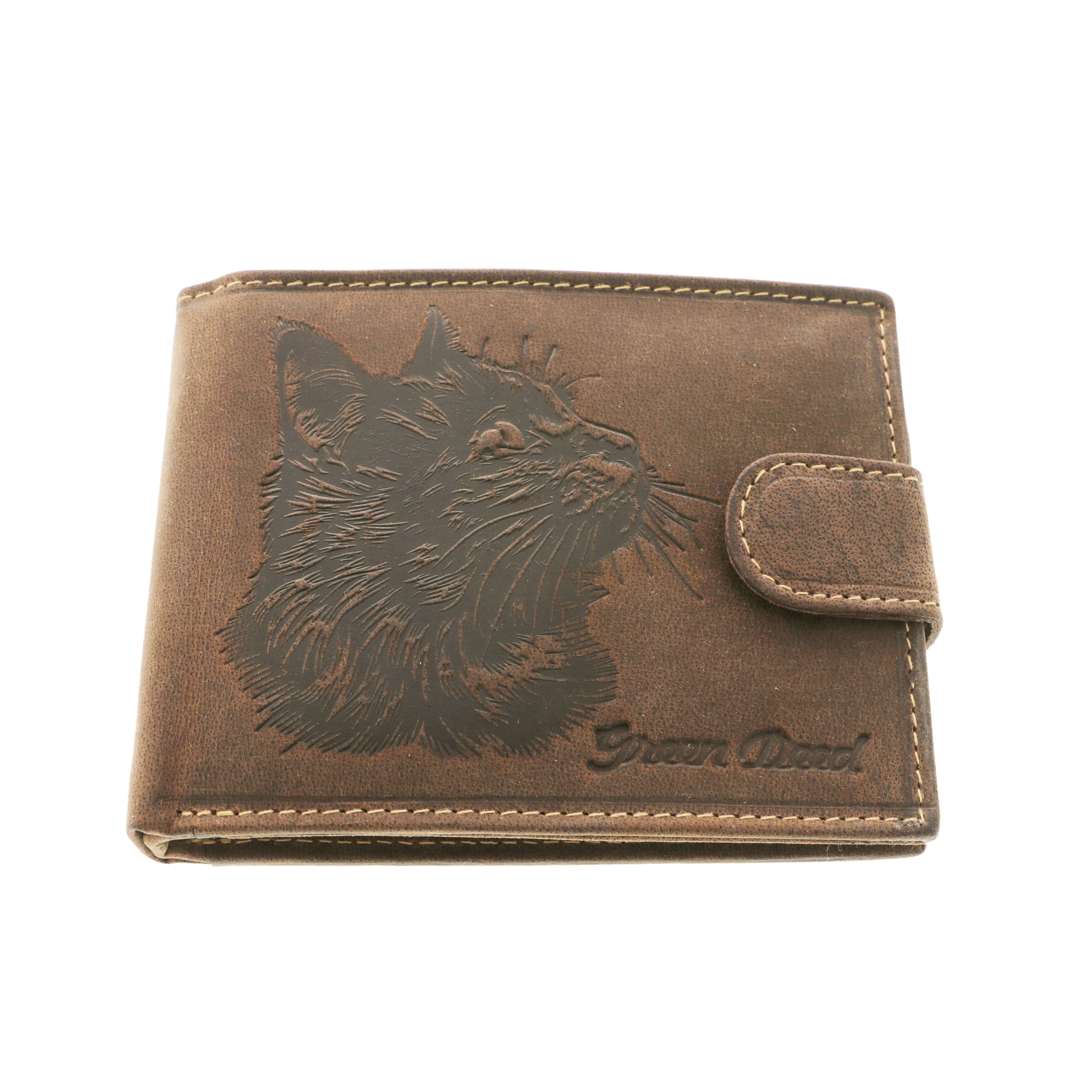 Men's Brown Genuine Leather Wallet – Cat Head Design with RFID Protection