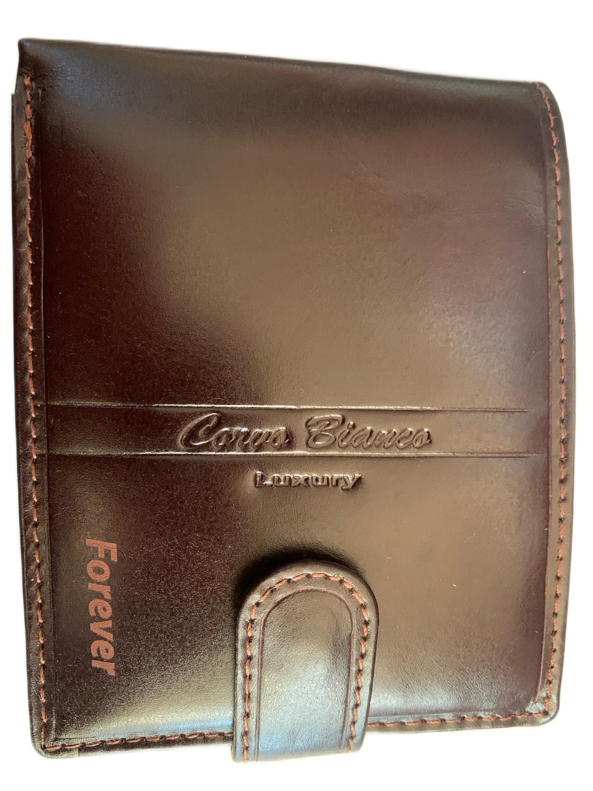 The men's wallet from the Corvo Bianco Luxury collection is a special piece, made of natural dark brown leather, which exudes elegance and sophistication. Part of a luxury collection, this wallet stands out for its quality materials and attention to detail.