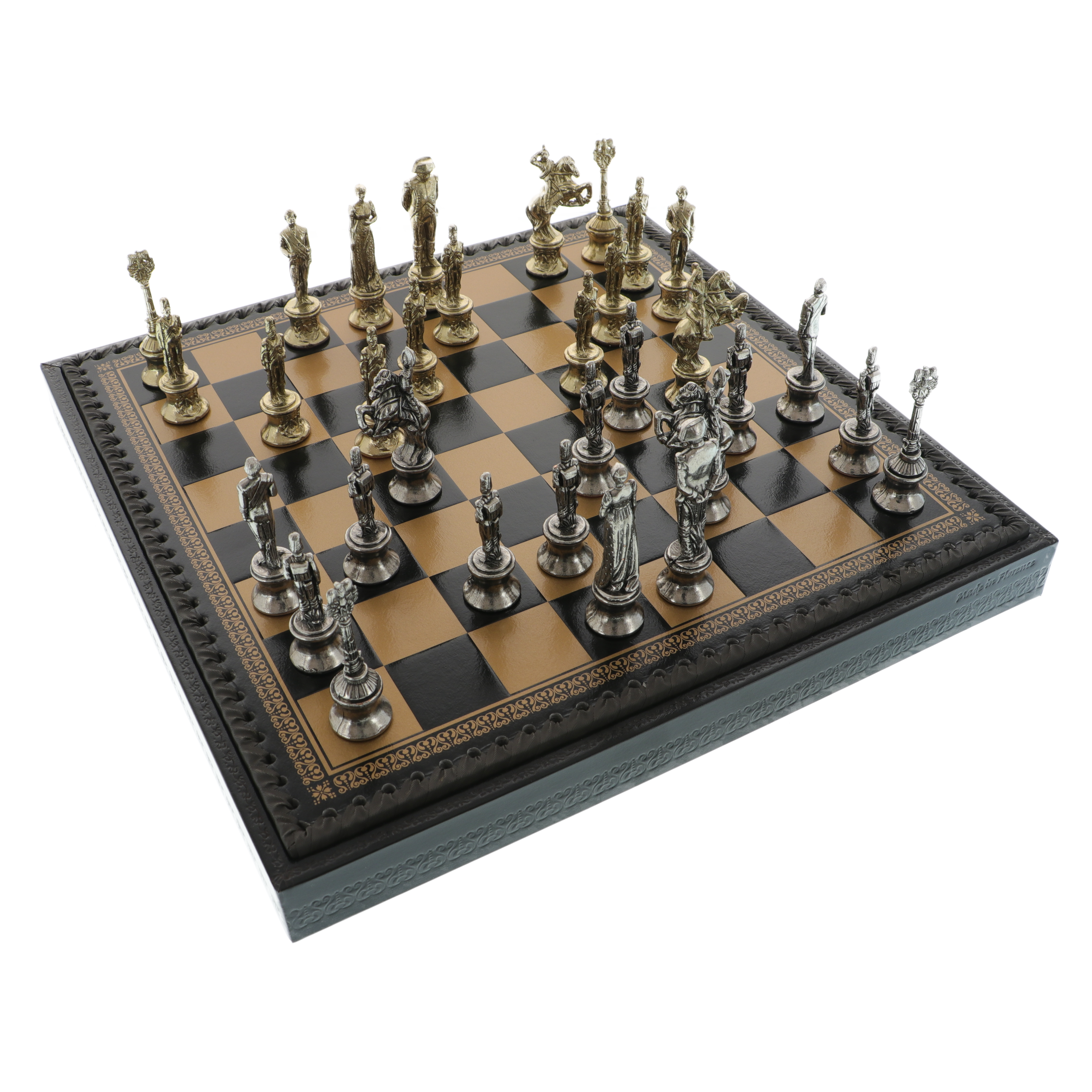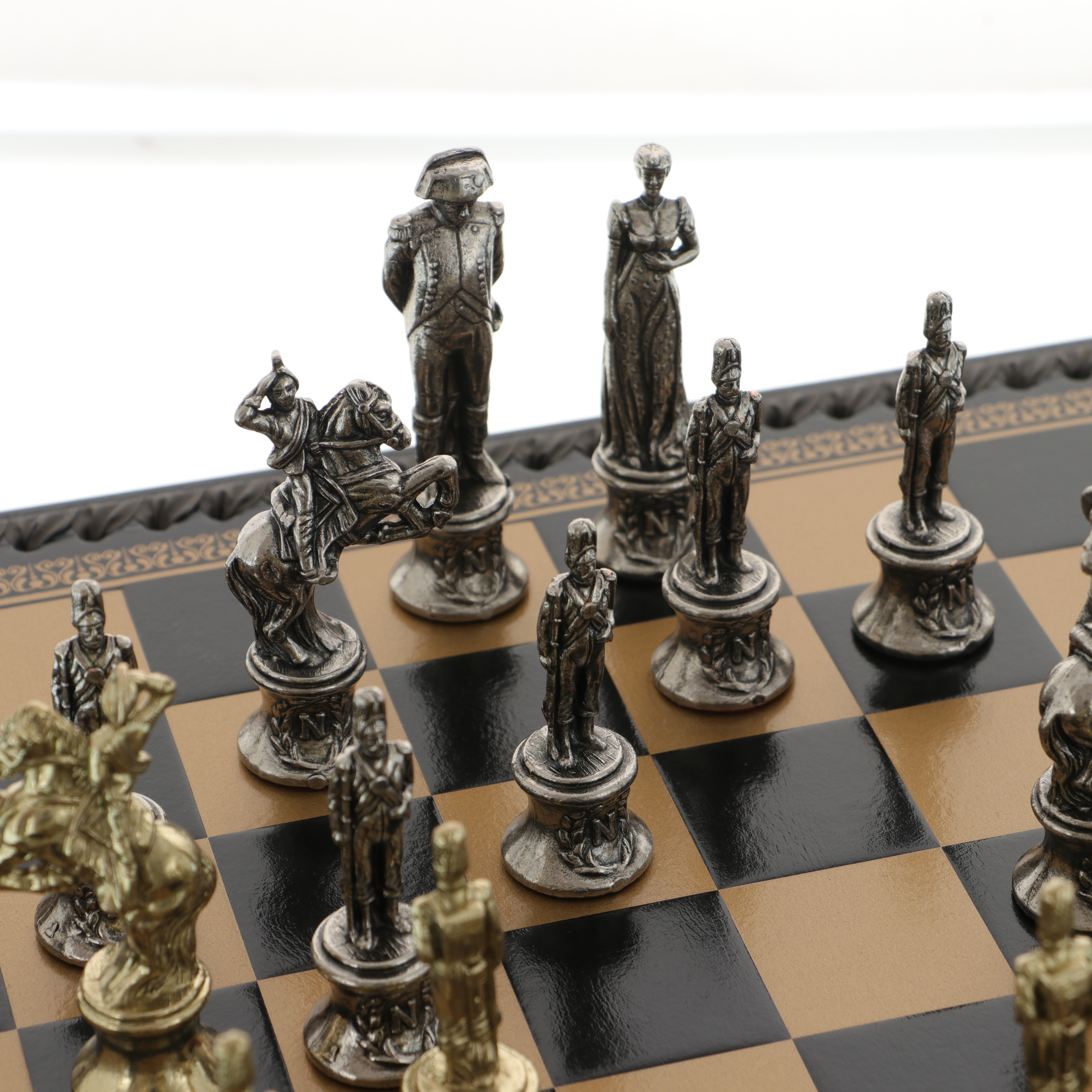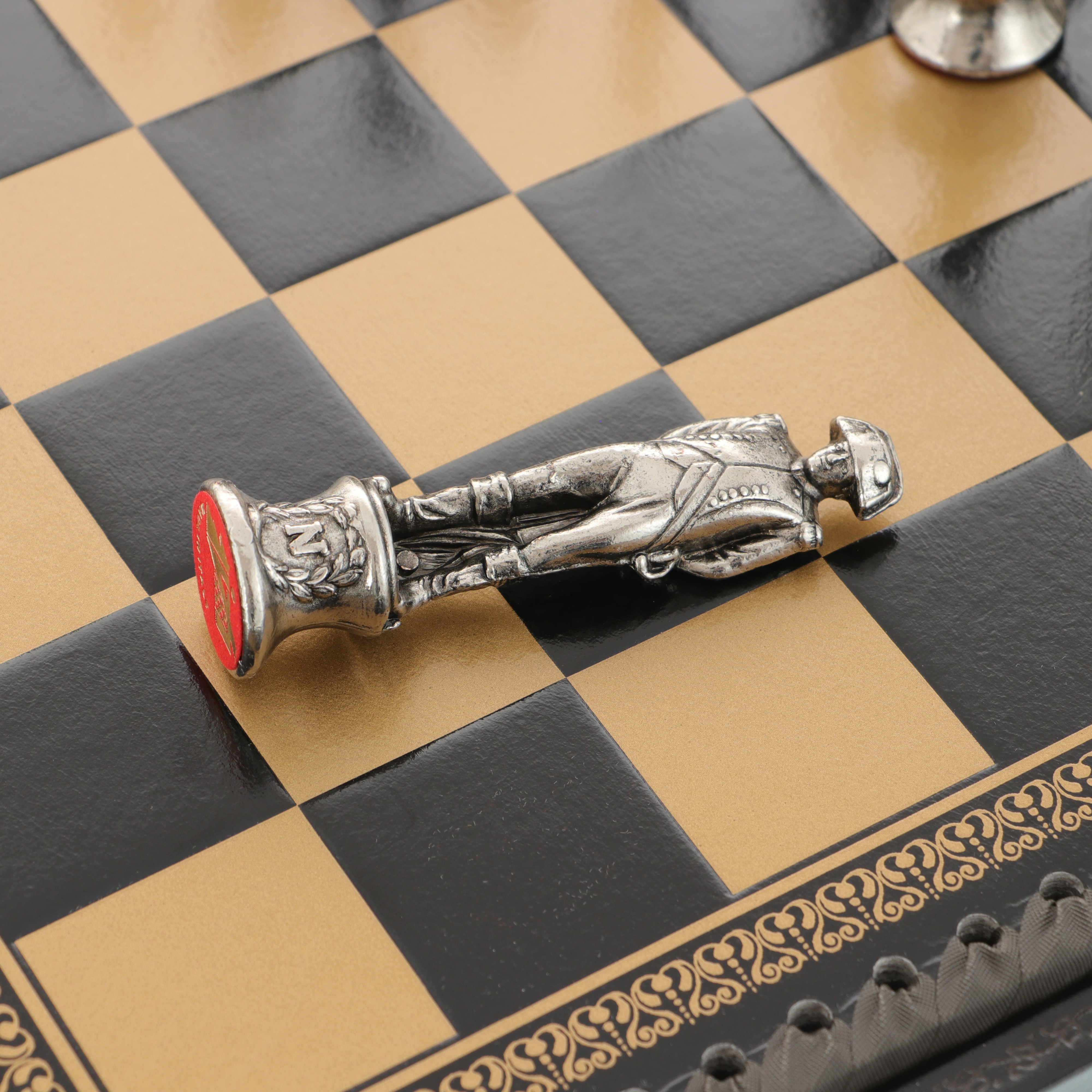 Exclusive Chess in Leather Case with Napoleon Metal Pieces