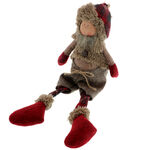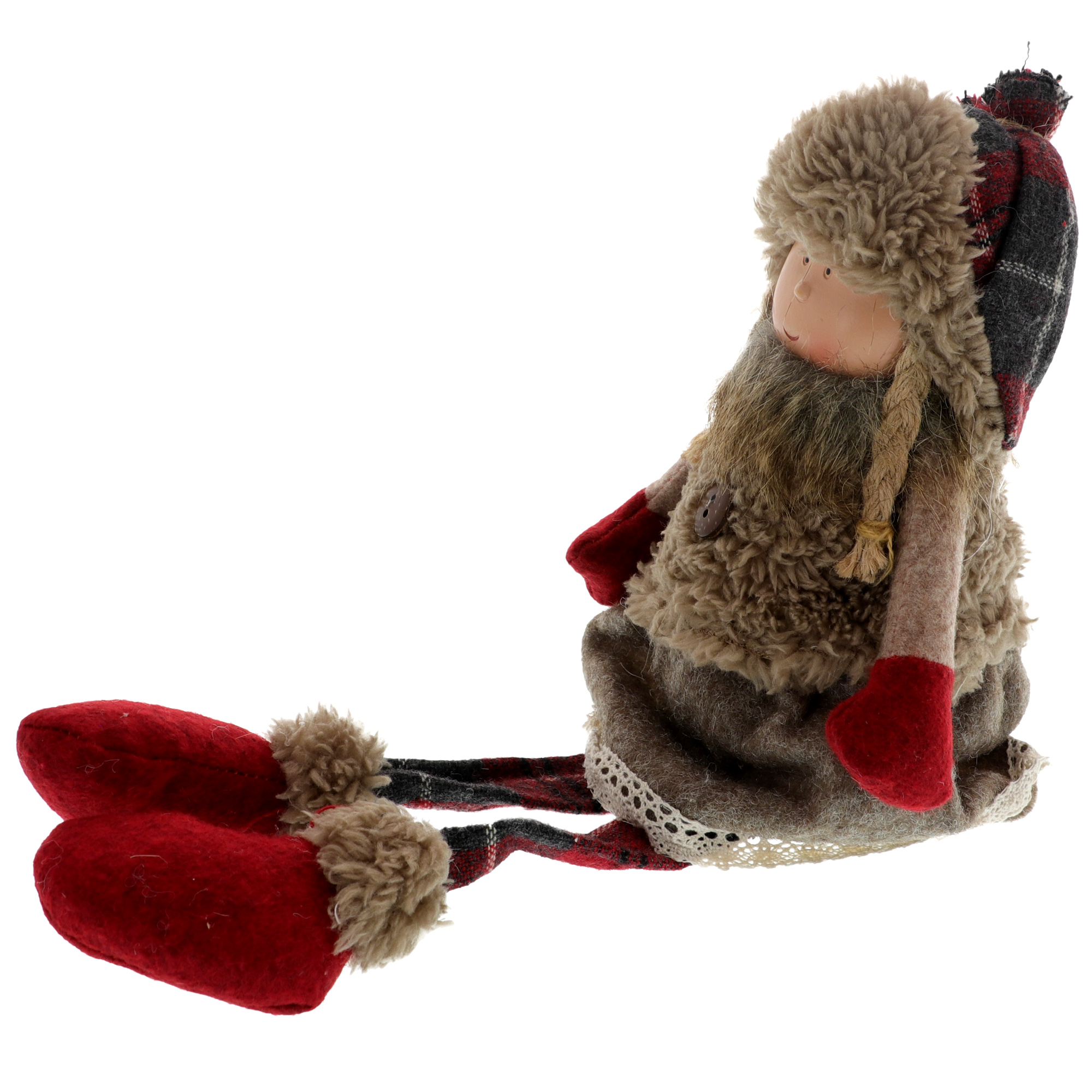 The child figurine with clothes and legs made of textile material, and the face is made of resin. Having a height of 36 cm with legs, this decor is available in 2 variants: the girl with braided hair in skirt and the boy in pants. The vest and the edge of the hat are made of fur. The legs being flexible, it can be placed both on the shelf and on the edge of the furniture, leaving the legs to hang down. Dimensions: 14x12x17cm in sitting position, legs length: 20 cm, total height - 36cm.