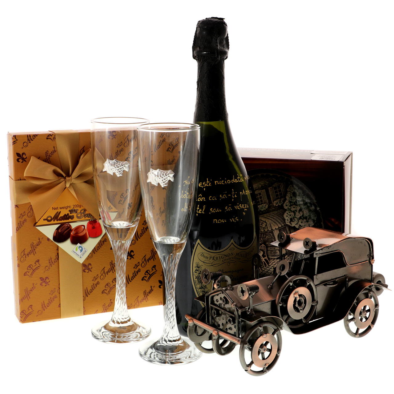 Luxury gift with personalized Dom Perignon, an elegant gift for men, created especially for people with refined tastes. The set consists of: