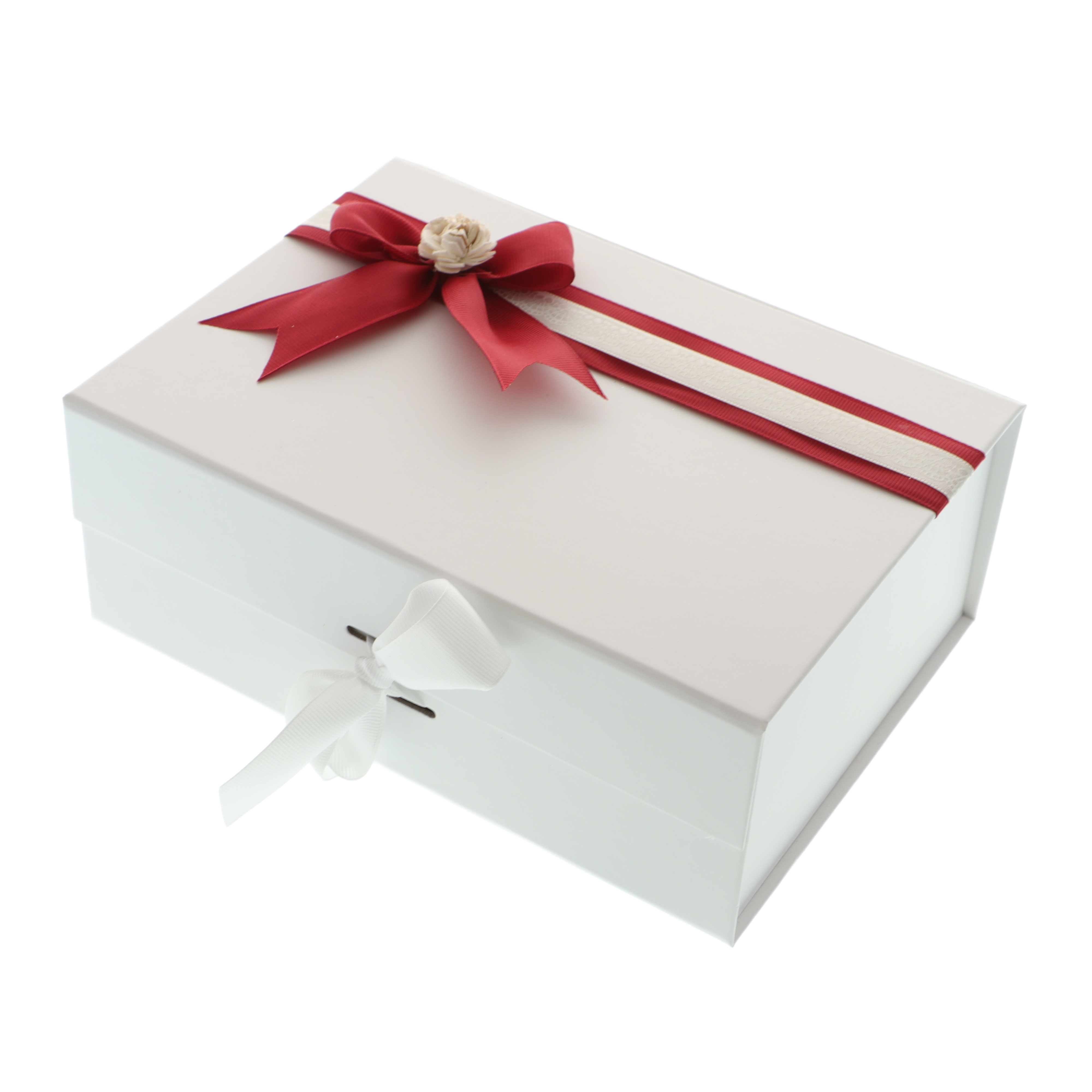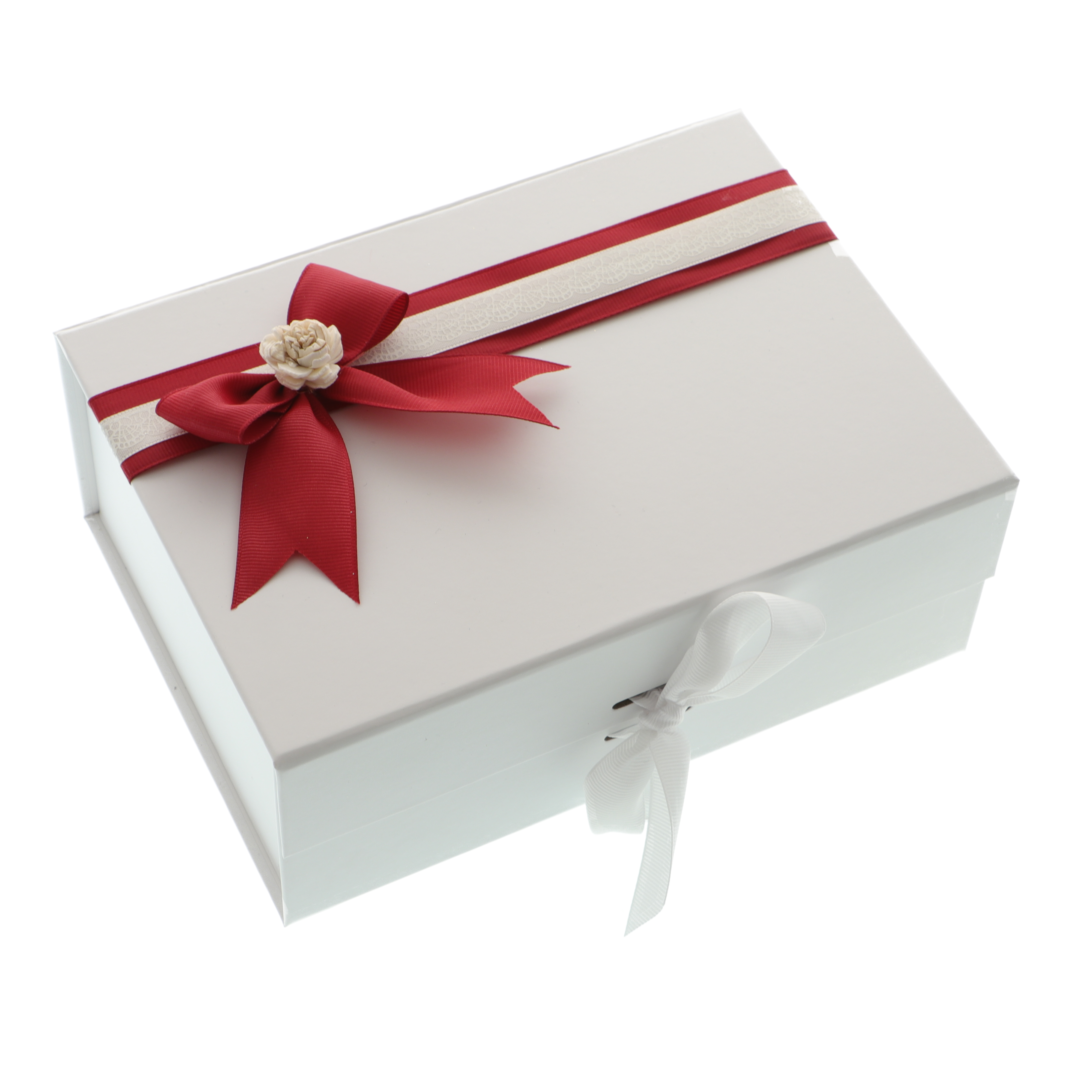 * Packaging: Luxury gift box with satin interior, ribbon, and matching satin bow