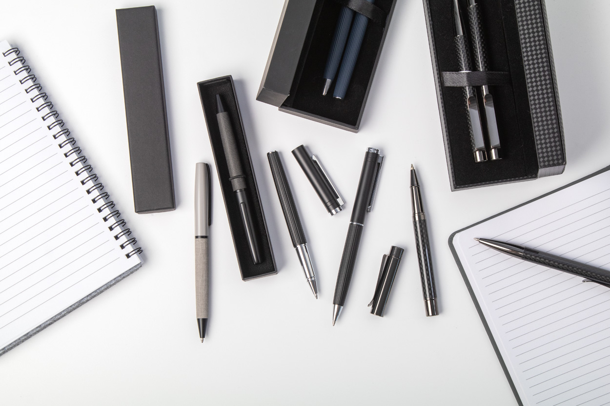 The pen and roller can be personalized with a name, initials or a short message, by engraving.