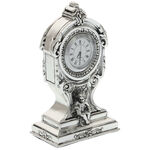 Italian Pattern silver watch, a luxury gift for men that will fit both on the desk and on the bedside table. The watch is made of wood with metal, and the shiny bezel is plated with pure silver. The back of the watch can be customized by applying a plate engraved with a message. The mechanism is silent, the secondary having continuous movement. It works on the basis of 1 AA battery, not included in the box. Dimensions 11x16 cm.