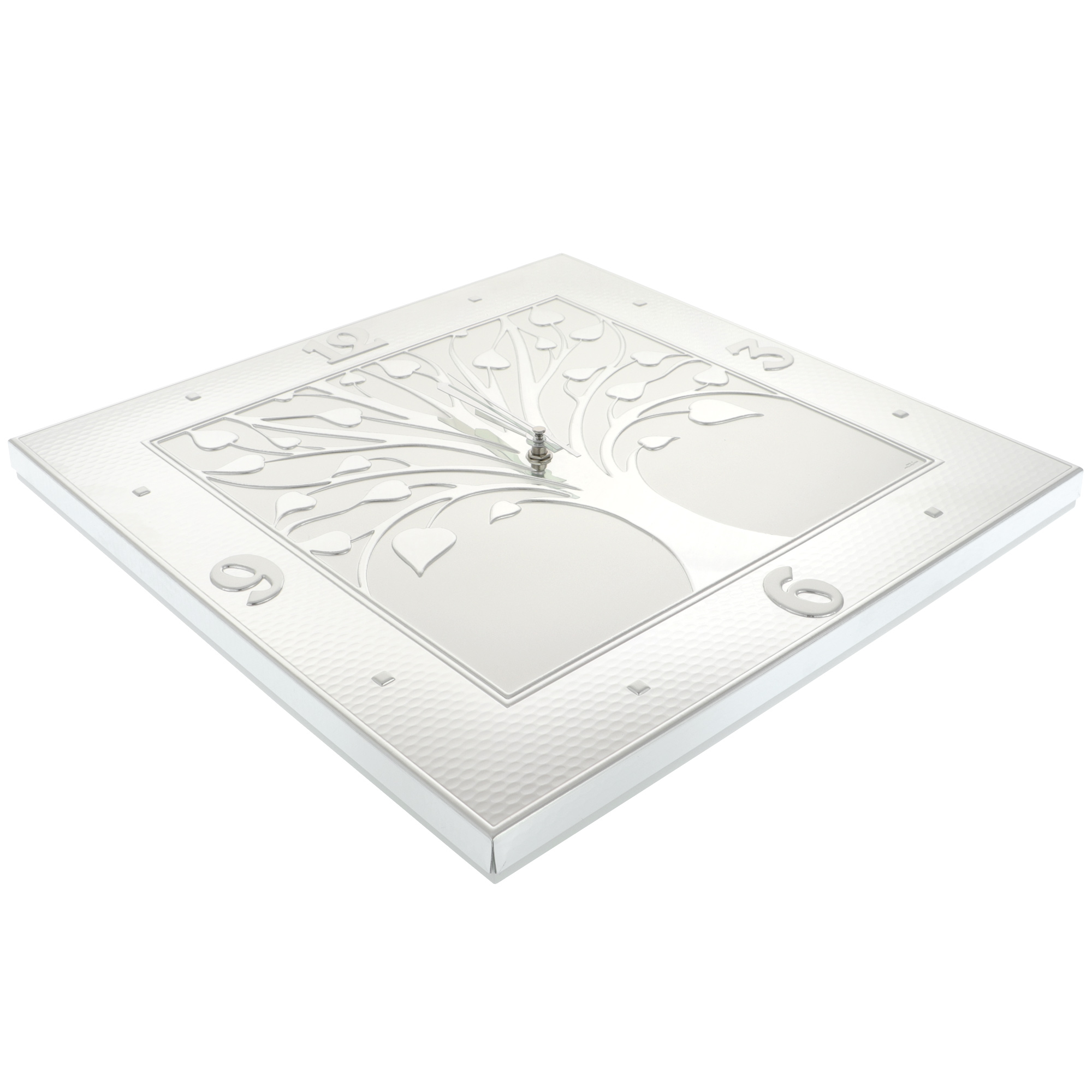 With an impressive diameter of 40 cm, this clock immediately becomes the focal point of the space in which it is placed. It is made with care in Italy, a country renowned for the art and quality of its products. The glossy silver square dial is perfectly balanced with the white finished wooden back, providing an eye-catching and contemporary contrast.