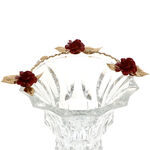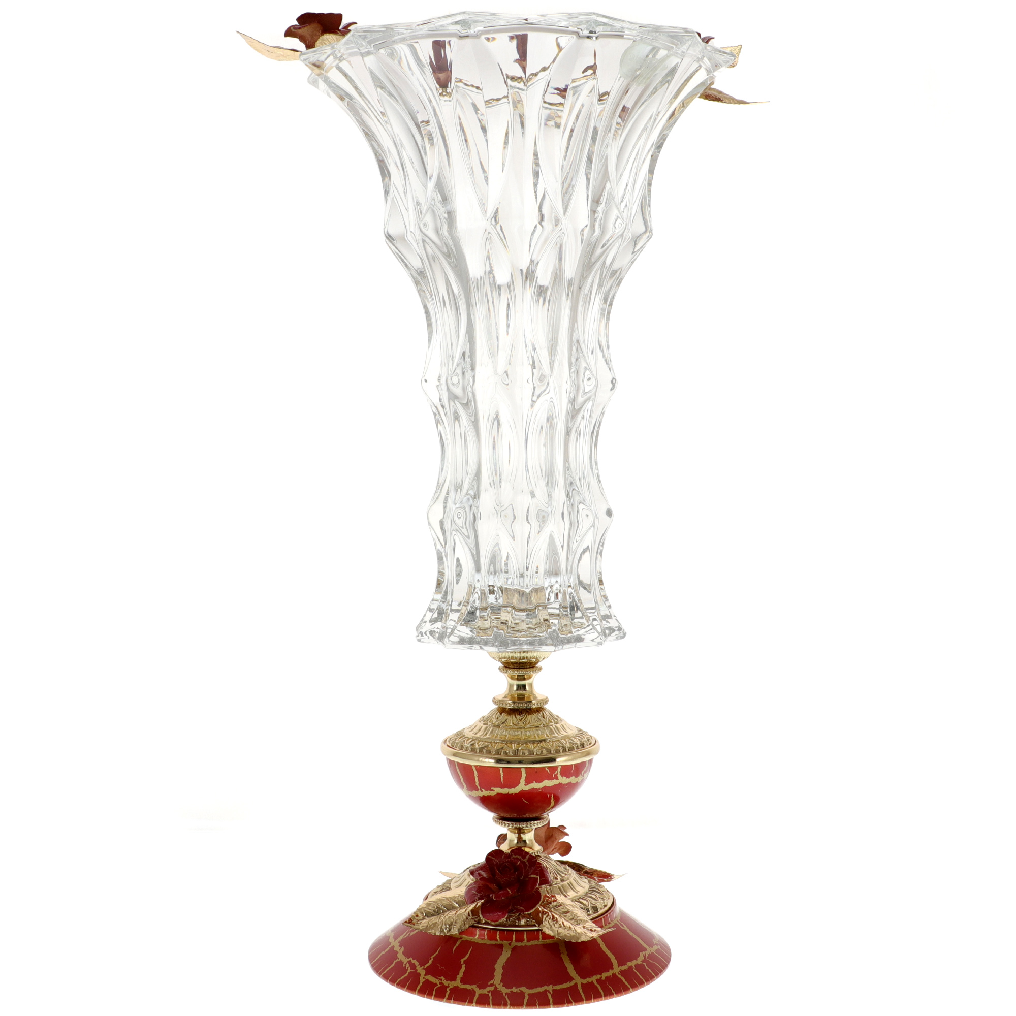 Luxurious Burgundy vase with porcelain roses, a luxury gift that gives the environment an elegant and refined air. The vase is made of murano glass, 24K gold-plated metal and hand-crafted porcelain. The flowers are found both at the base of the vase and on the upper edge. Dimensions: 24x29x50cm.