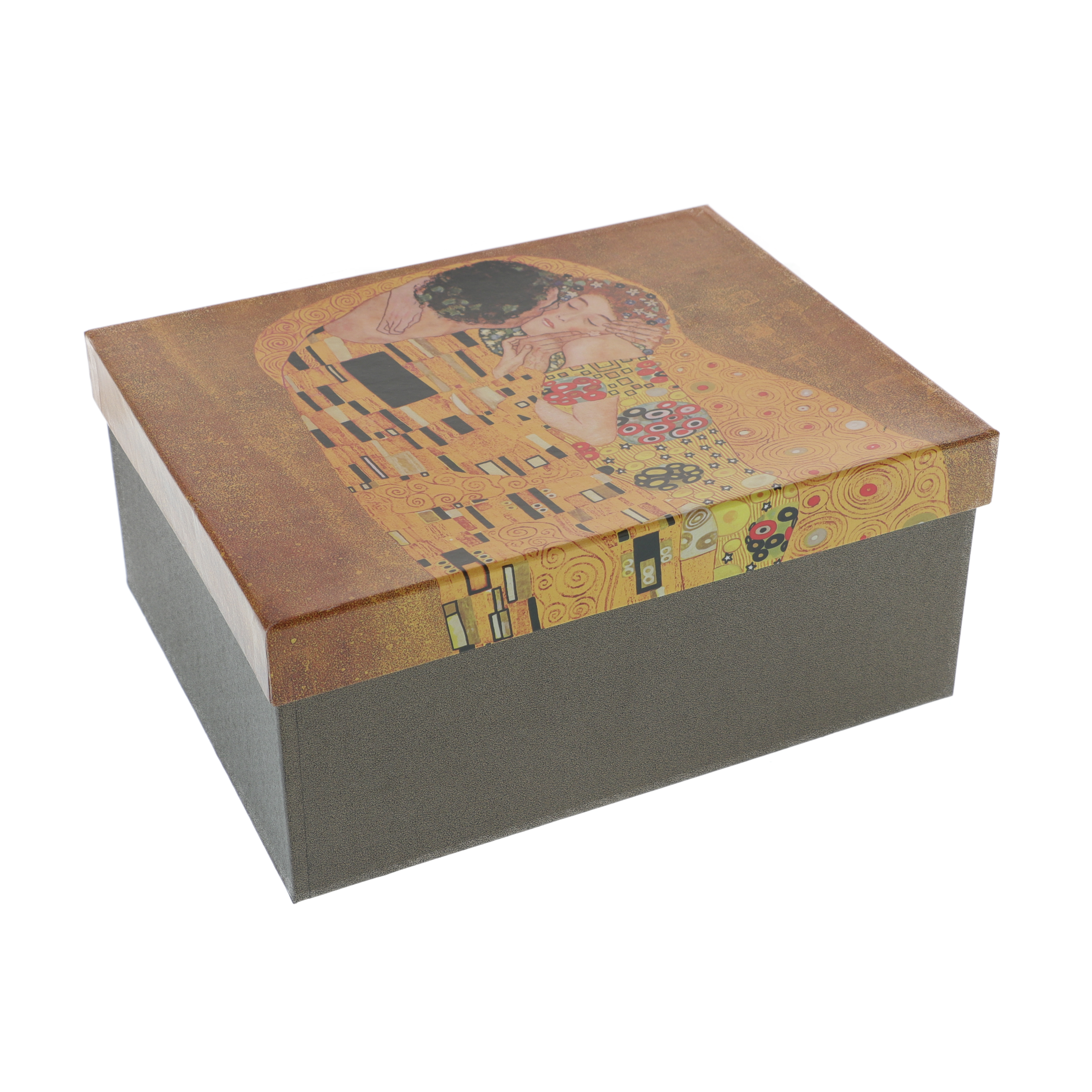 Az ajándékdoboz, amelyben ezek a termékek vannak, ugyanolyan elegáns és kifinomult, mint a tartalma. A Klimt festménye által ihletett, ugyanazzal a dizájnnal díszített doboz extra luxust és stílust kölcsönöz az egész készletnek.