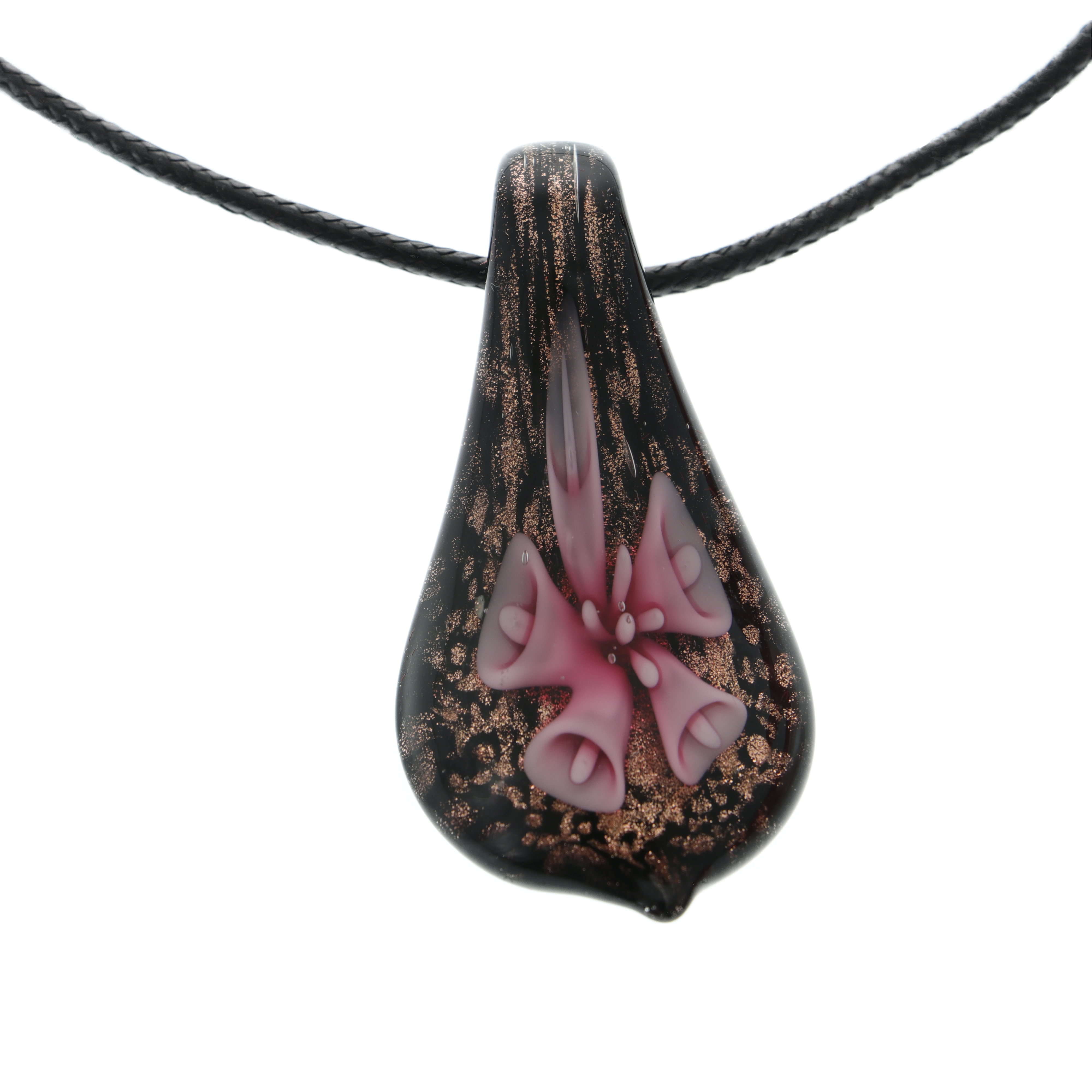 💎 murano üveg medál - Bájos kiegészítő, művészi virágmintával , egy állítható fekete lánc kíséretében . Az ékszert egy elegáns ajándékdobozba helyezik.