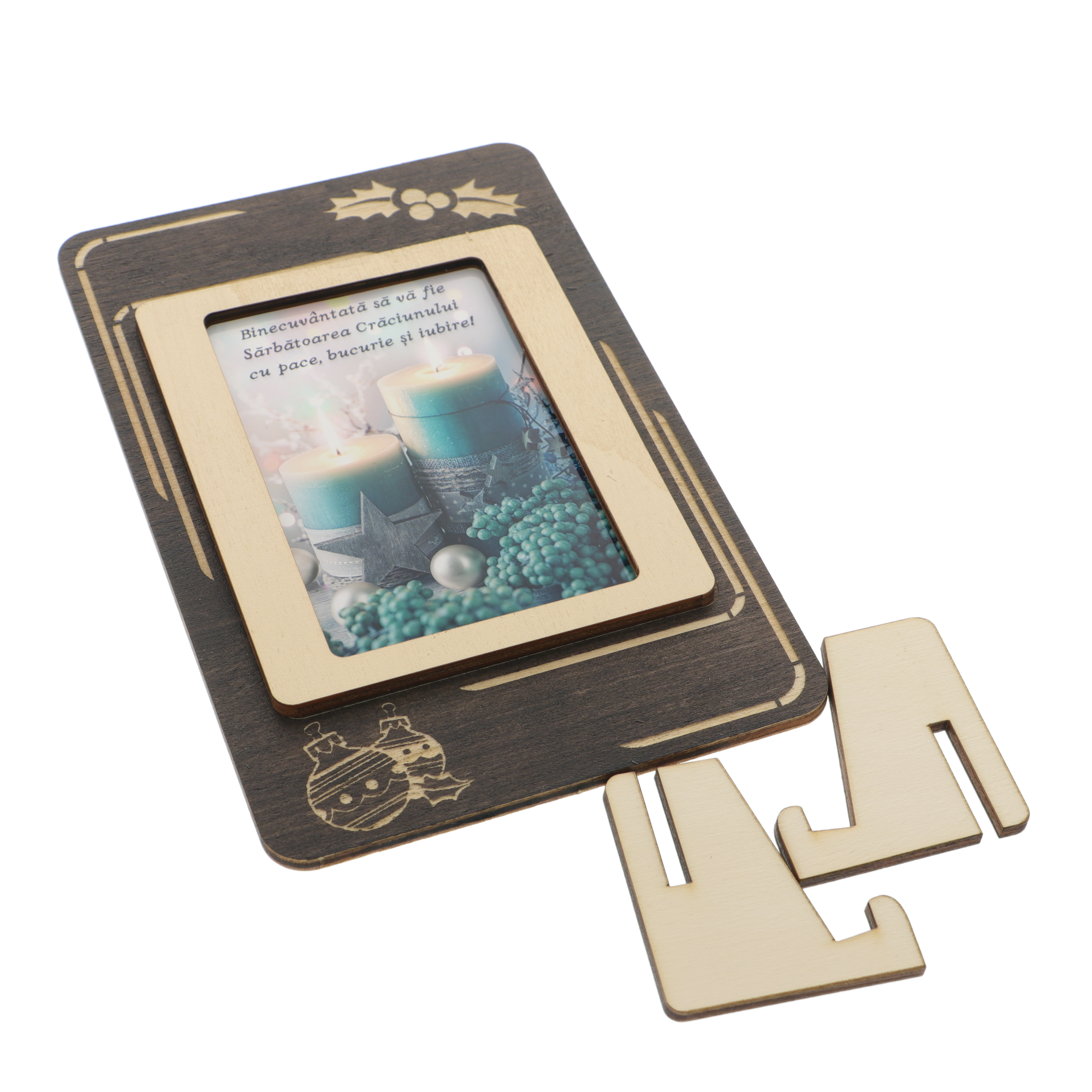 Ünnepi dizájn: A keretet gravírozott karácsonyi motívumok díszítik, így tökéletes kiegészítője az ünnepeknek.