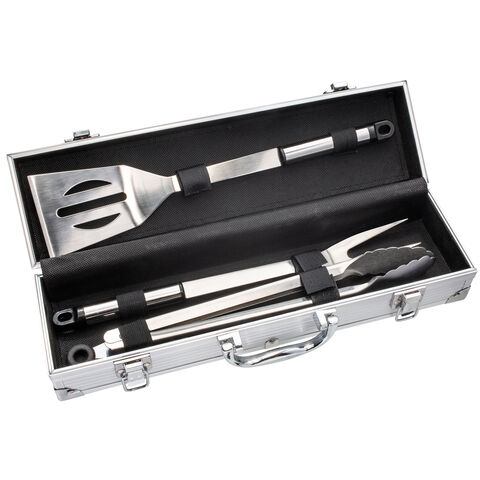Grillkészlet három darab rozsdamentes acélból, fémdobozba helyezve, ovális lappal díszítve, amelyen gravírozott üzenet látható. A grillszett tartalmaz fogót, békalábot és villát. Ez egy egyedi ajándék azoknak, akik szeretnek a szabadban, grillezésnél tölteni az időt.