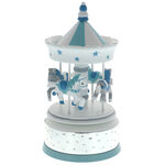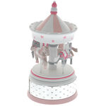 Zenés körhinta fából készült lovakkal Olaszországban, nagy figyelmet fordítva a részletekre és a kivitelezésre. Az alapra ezüstözött fémcsík került. A lovak 2 különböző árnyalatban vannak tarkítva. Ez a termék 2 színben kapható: világoskék vagy rózsaszín. Ez az ajándék lánynak és fiúnak egyaránt alkalmas. Amikor a tetejét elfordítják, a mechanikus körhinta elkezd játszani egy dalt, és forog. Díszdobozba van helyezve. Méretek - 11x11x20 cm. Lézergravírozással ellátott hajlékony lemez felvitelével testreszabható.