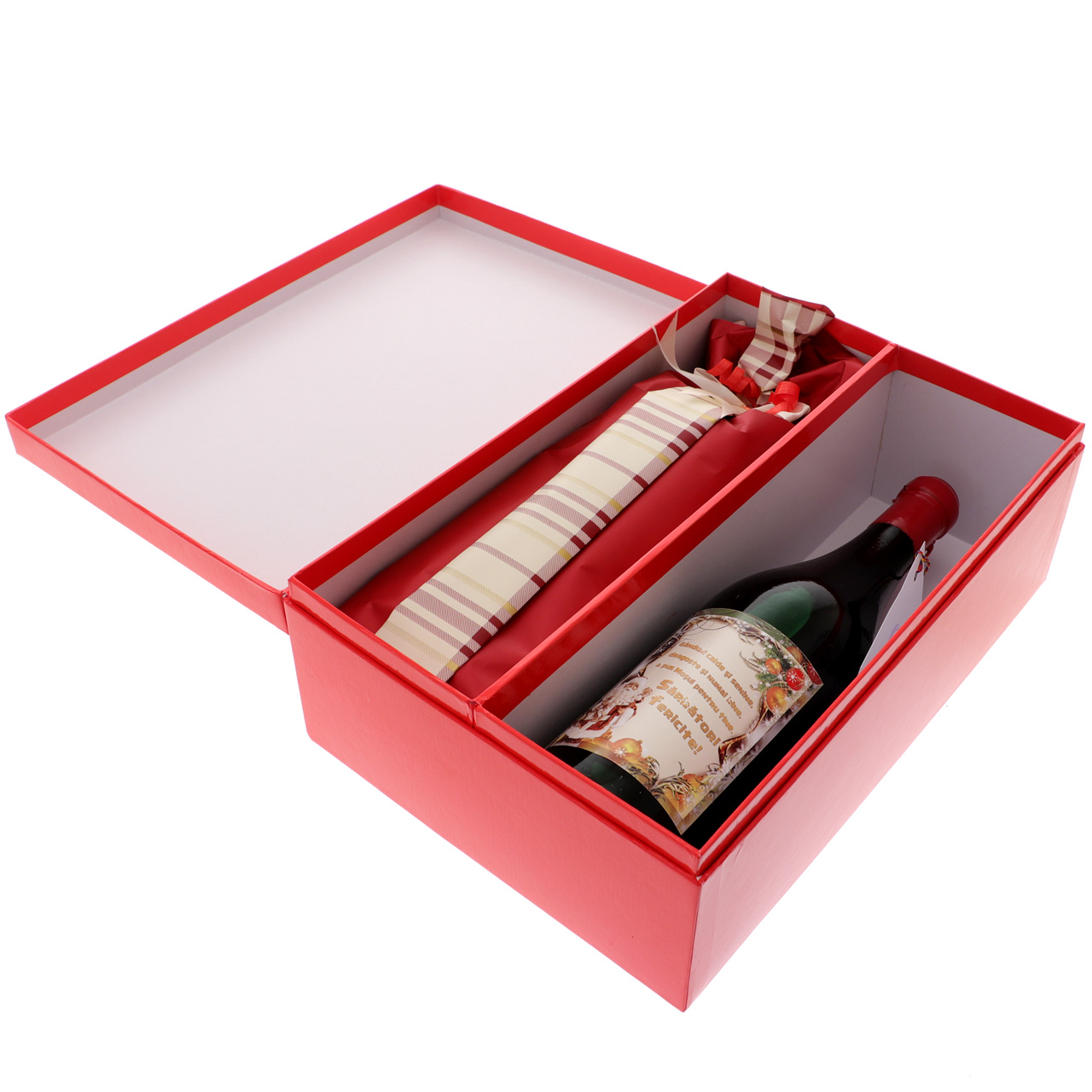 Meleg karácsonyi gondolatok, ajándék gyűjtői bort tartalmazó üzenettel és tortával, díszdobozban.