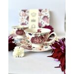 Doboz mérete - 21x18x11 cm, csésze mérete 10x13x7 cm, tányér átmérője - 15 cm