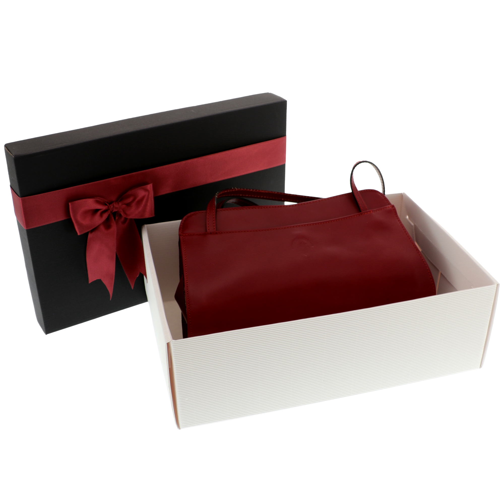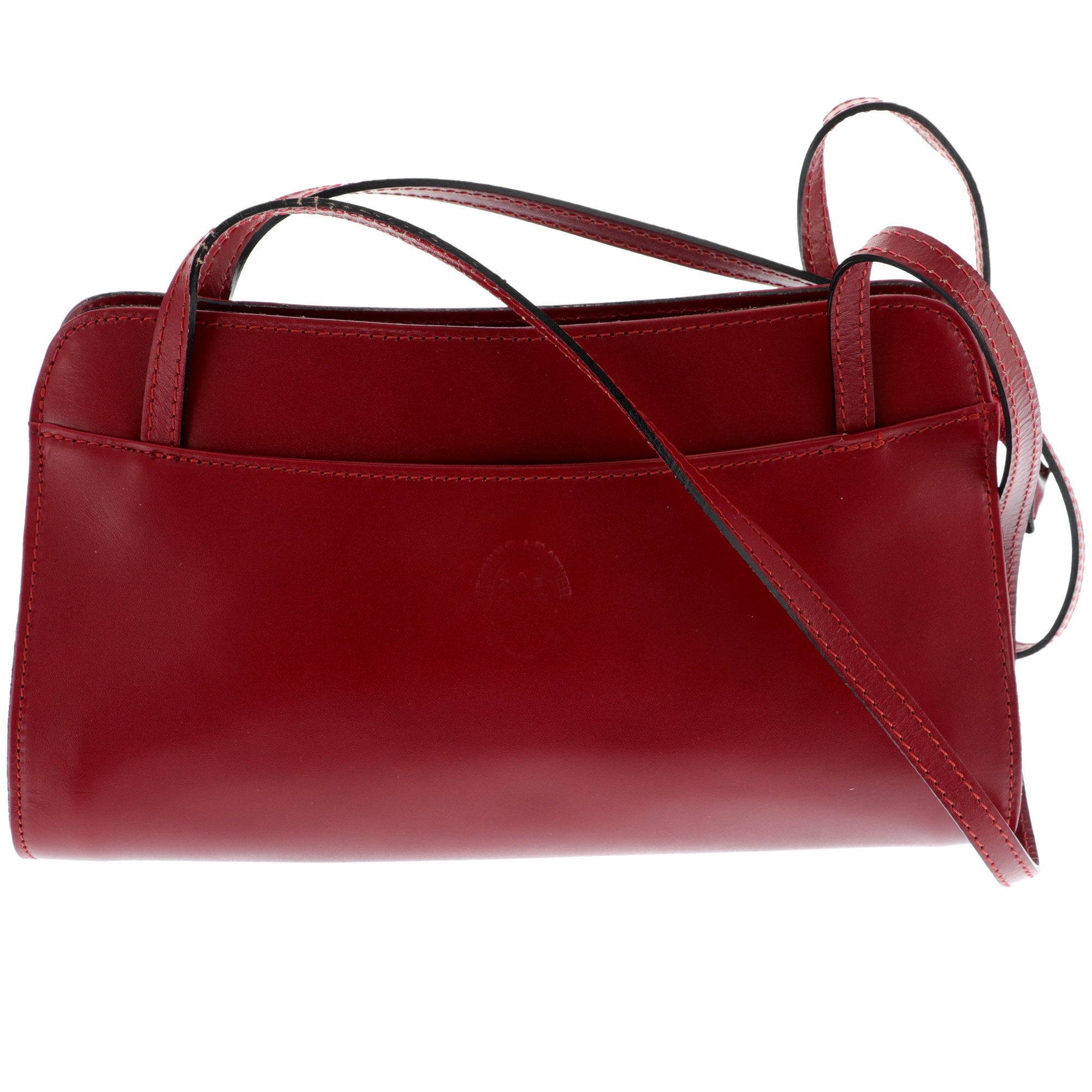 Sylvia elegáns női kézitáska, kiváló minőségű természetes bőrből, bordó színben. A táska rögzített pántal van felszerelve, szintén bőrből. Van egy cipzárral ellátott fő rekesze, a belsejét 2 egyforma térre osztja egy vékony cipzáras rekesz. Az oldalakon 2 rekesz van kapcsos, ahol apró dolgok tárolhatók. Méretek: 18x30x11 cm.