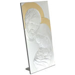 A Szűz Máriából, Szent Józsefből és a Kis Jézusból álló Szent Család a szeretet és a családi egység szimbóluma. Ez az ikon finom ezüst részletekkel és a Máriát és Józsefet körülvevő arany aurával egy csipetnyi pompát és szakralitást ad ehhez az ábrázoláshoz.