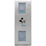Metru de perete pentru copii, un cadou de nelipsit pentru familiile cu copii mici. Metrul realizat in Italia din metal placat cu argint pur este decorat cu baby Mickey si Minnie Mouse si include 4 rame foto in care pot fi asezate fotografii de o dimensiune de 6x9 cm. Inaltimea maxima pe care o poate masura acest metru este de 140 cm. El trebuie agatat pe perete, la o inaltime la care sa indice corect marimea. Spatele este intarit cu lemn alb finisat impecabil. Metrul vine indoit la mijloc, dar cele 2 parti sunt prinse intre ele. Poate fi personalizat prin gravura laser cu numele copiilor. Dimensiuni - 13x77cm. Este asezat in cutie eleganta de cadouri.