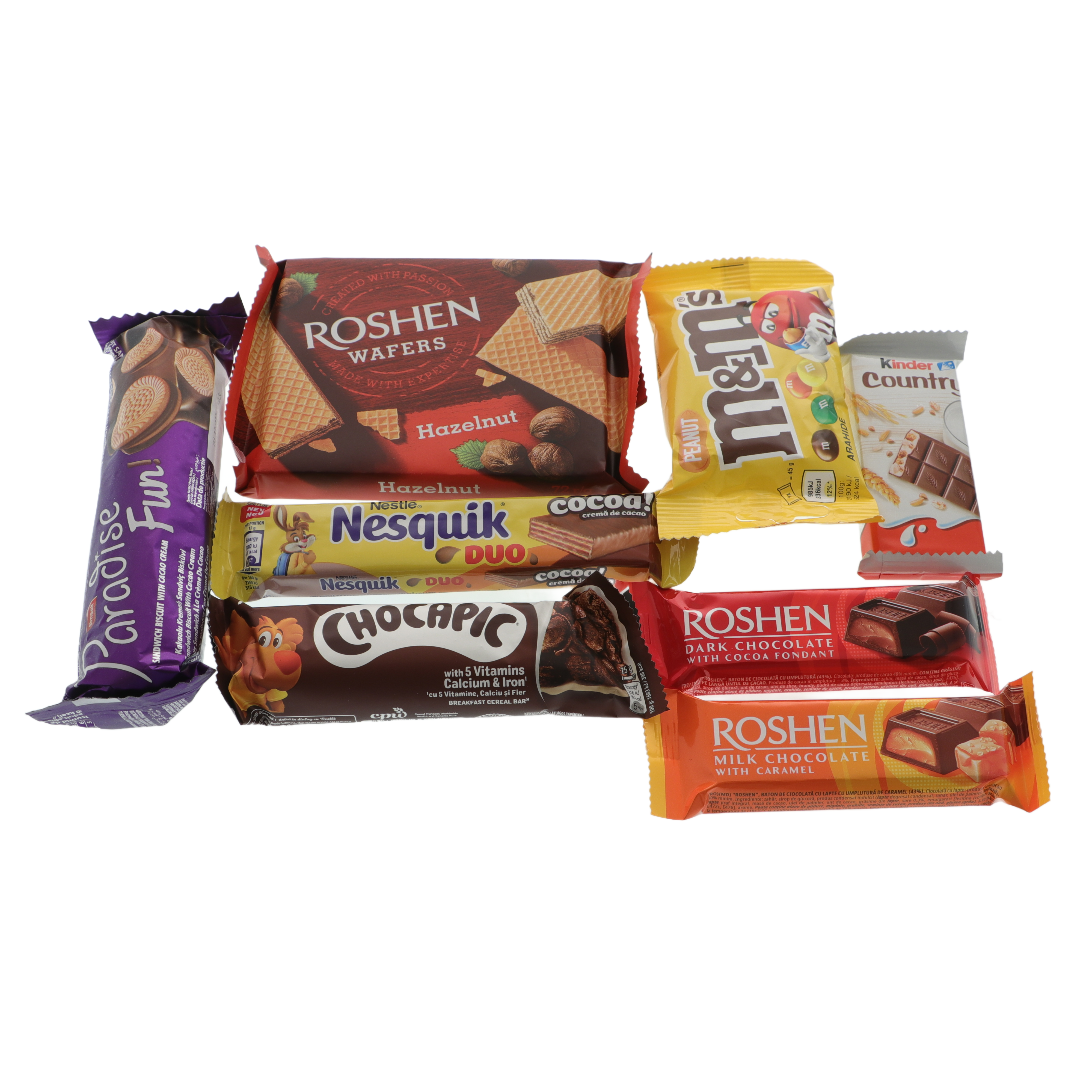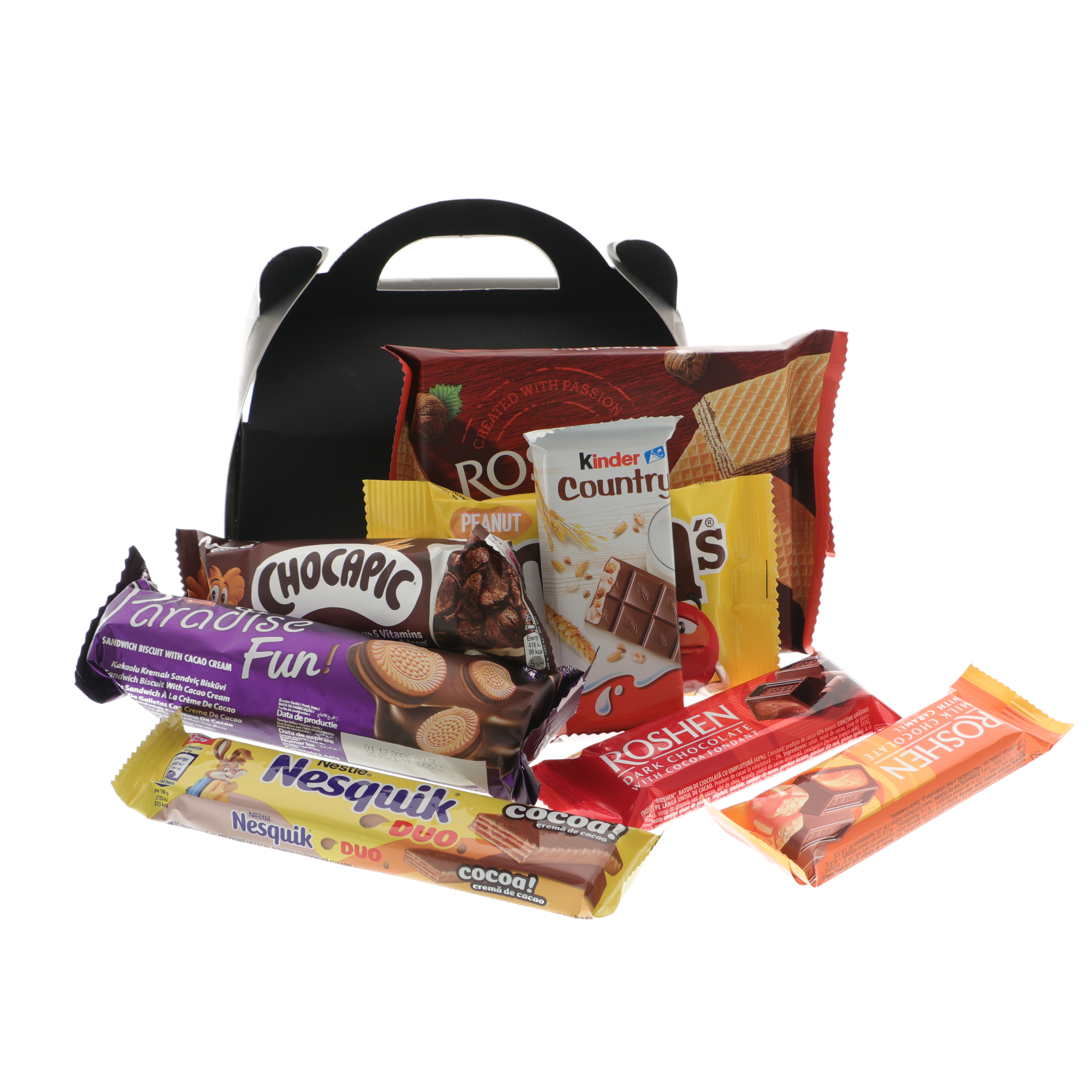 Răsfață-i pe cei mici cu un Pachet Cadou cu Dulciuri pentru Copii, plin de gustări adorate de toate vârstele! Acest set delicios conține o selecție variată de dulciuri populare, perfecte pentru cadou de Moș Nicolae, Crăciun, zile de naștere, sau pur și simplu pentru a aduce un zâmbet pe fața copilului tău.