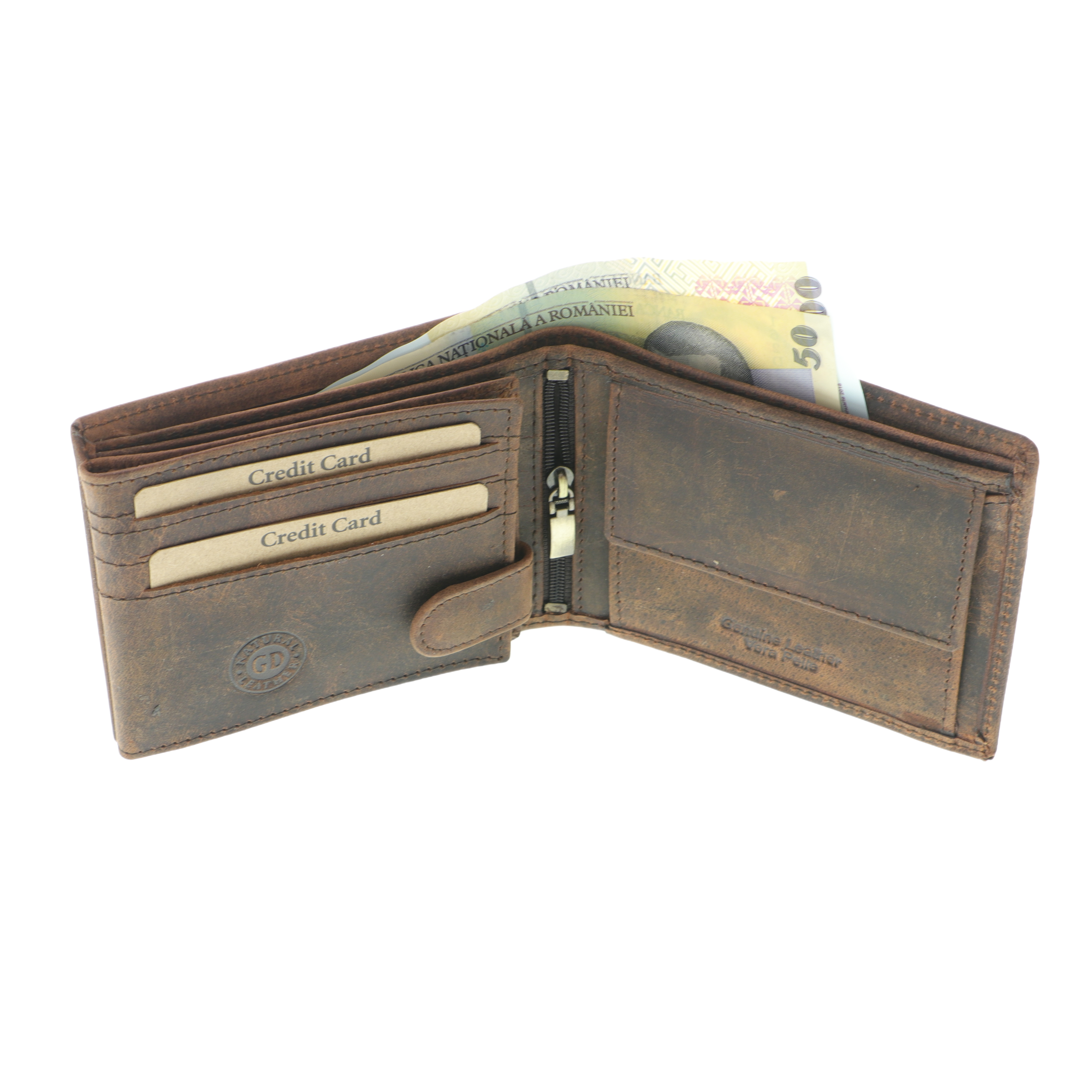 Portofel cu Tren piele naturala maro