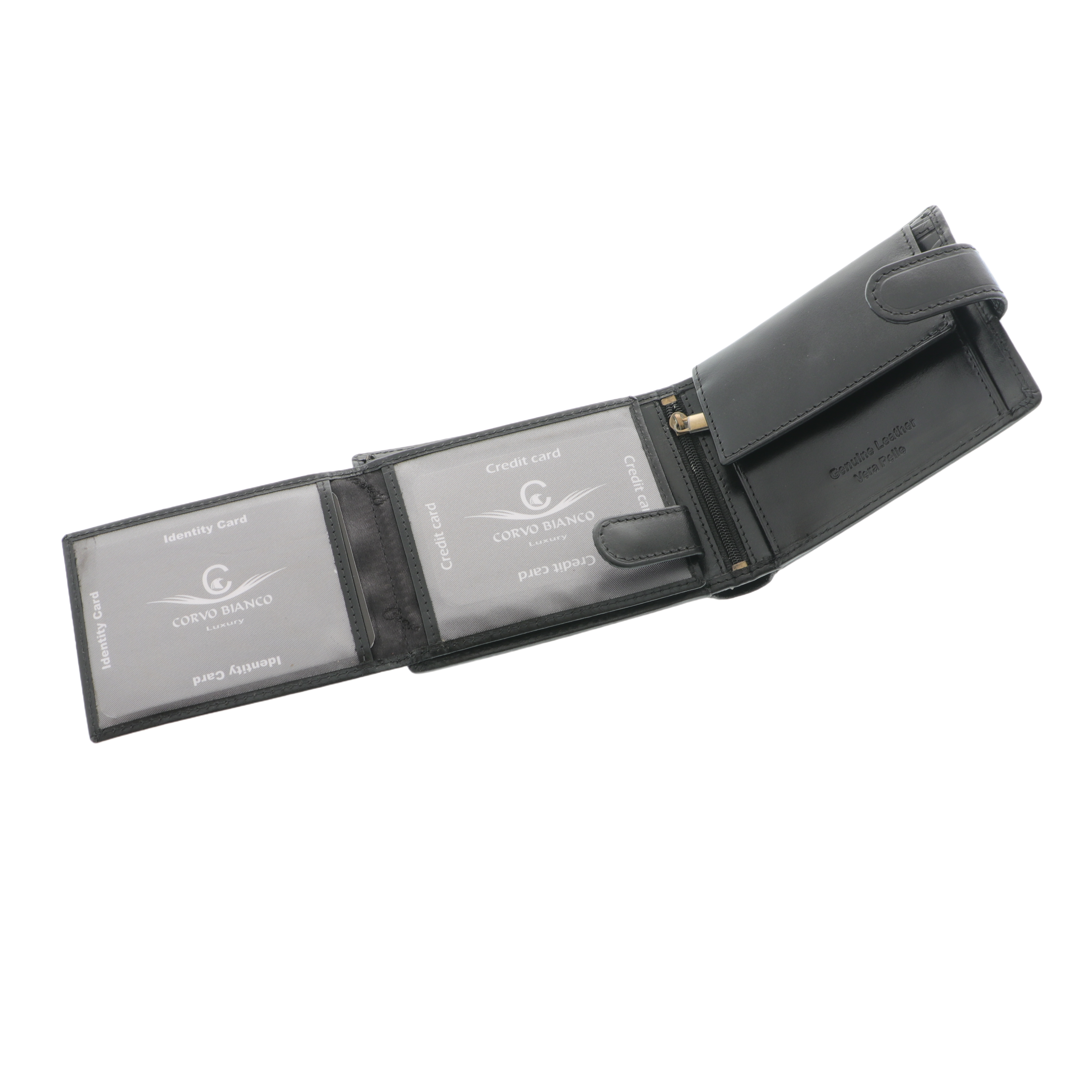 Realizat din piele naturală de calitate, portofelul face parte din colecția Corvo Luxury, având un design clasic și masculin. Sistemul de închidere cu capsă oferă siguranță și protecție pentru toate obiectele din interior.