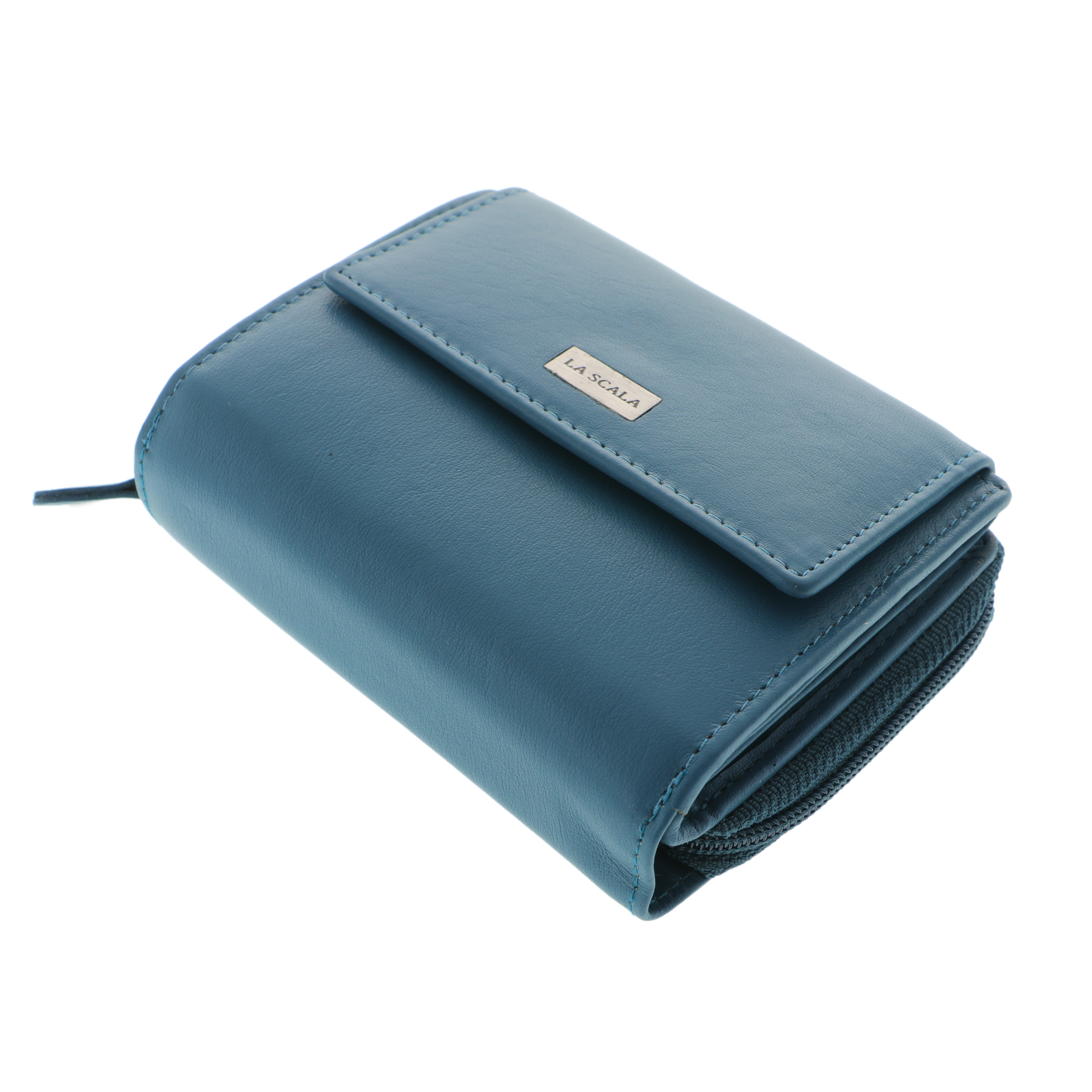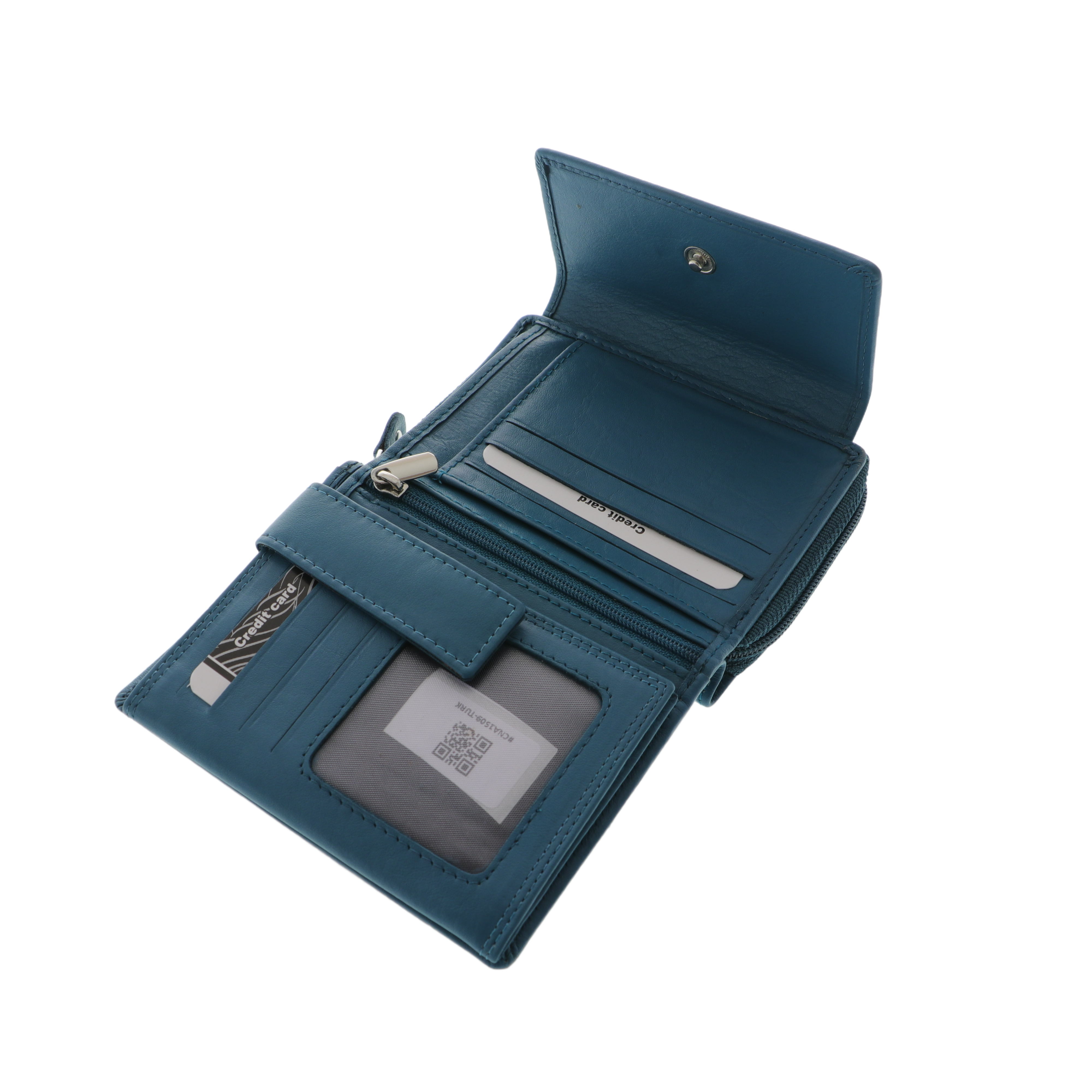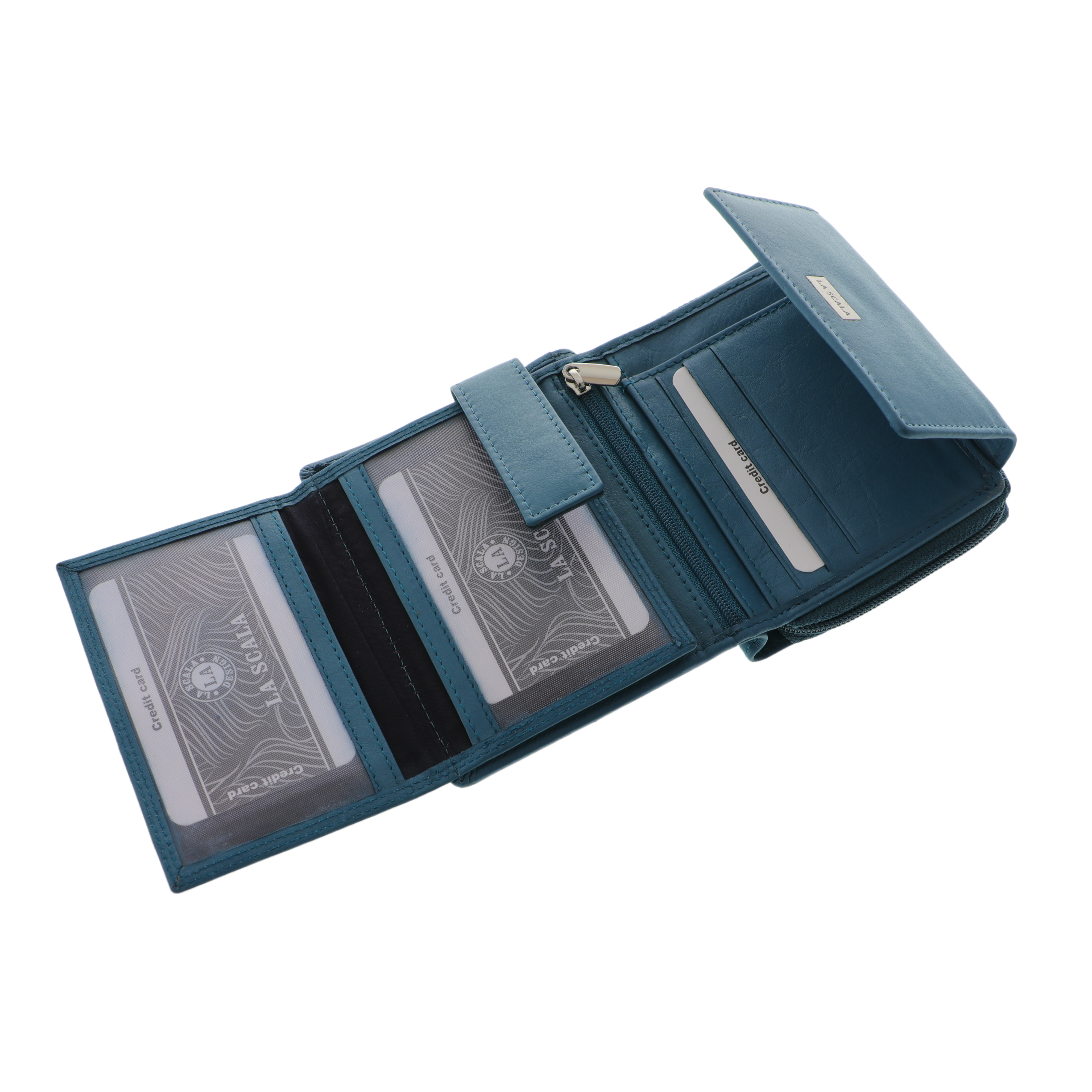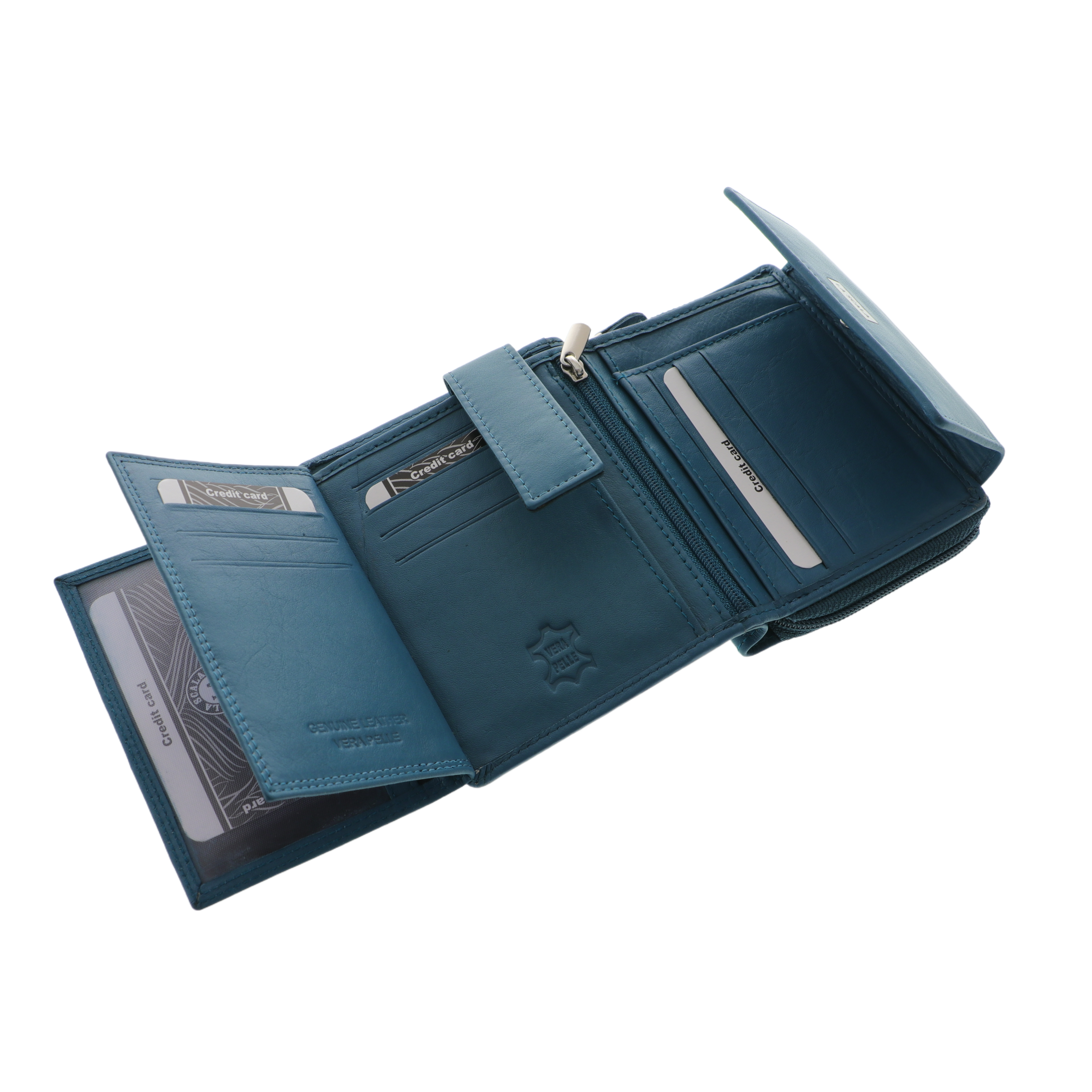 Portofel damă turcoaz Ruby – piele naturală, 10x13 cm