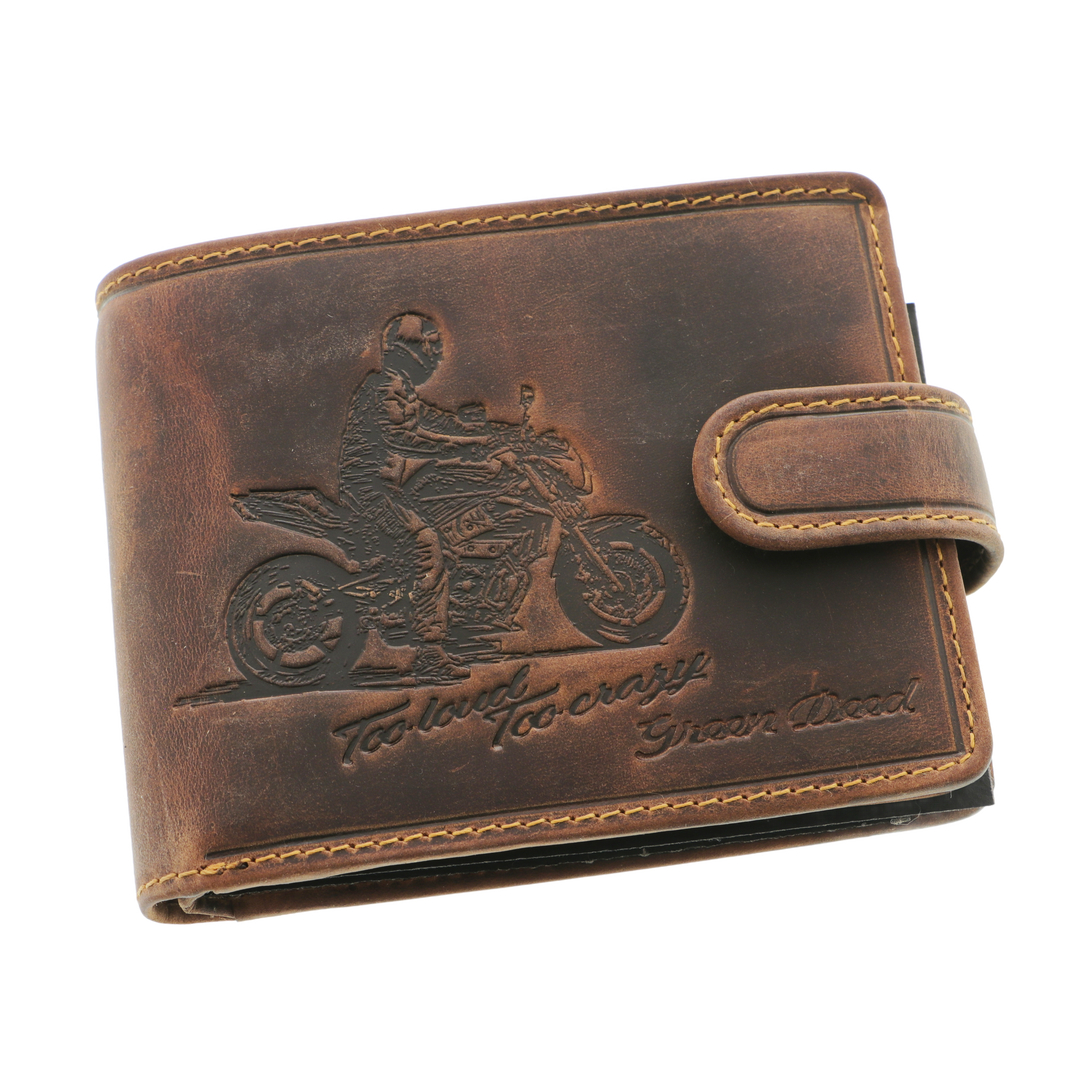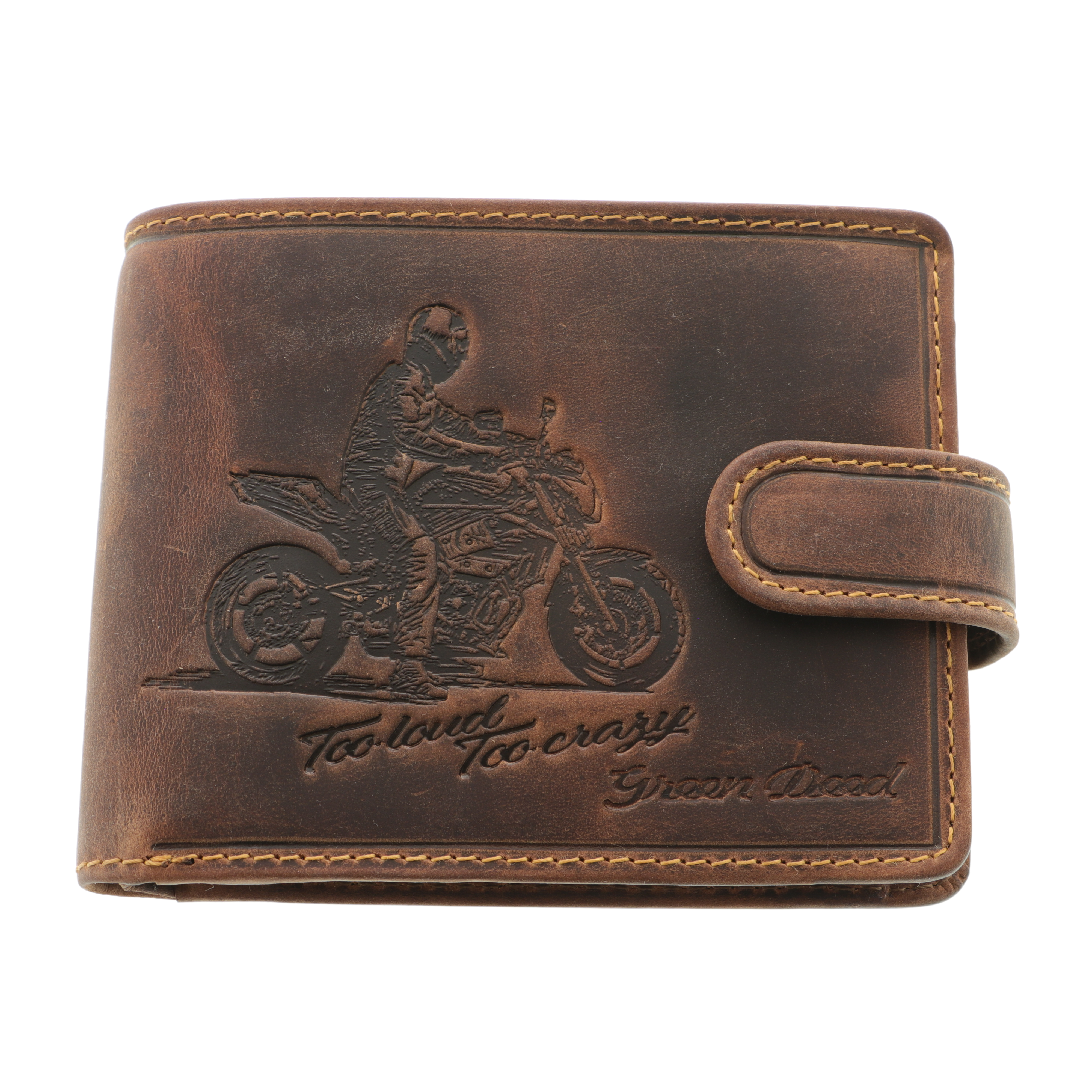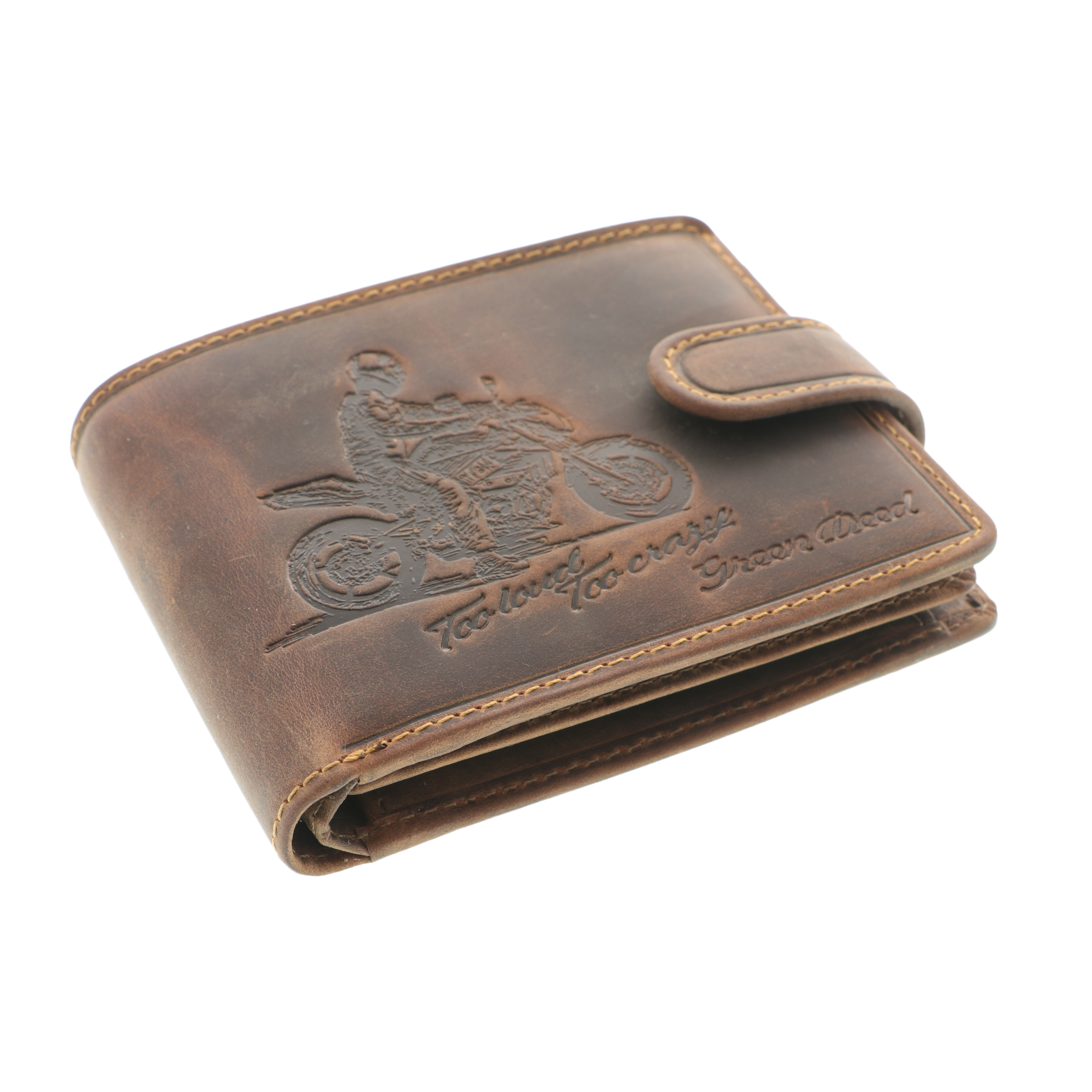 Portofel Motor Sport din piele naturală maro – design unic cu motociclist în relief