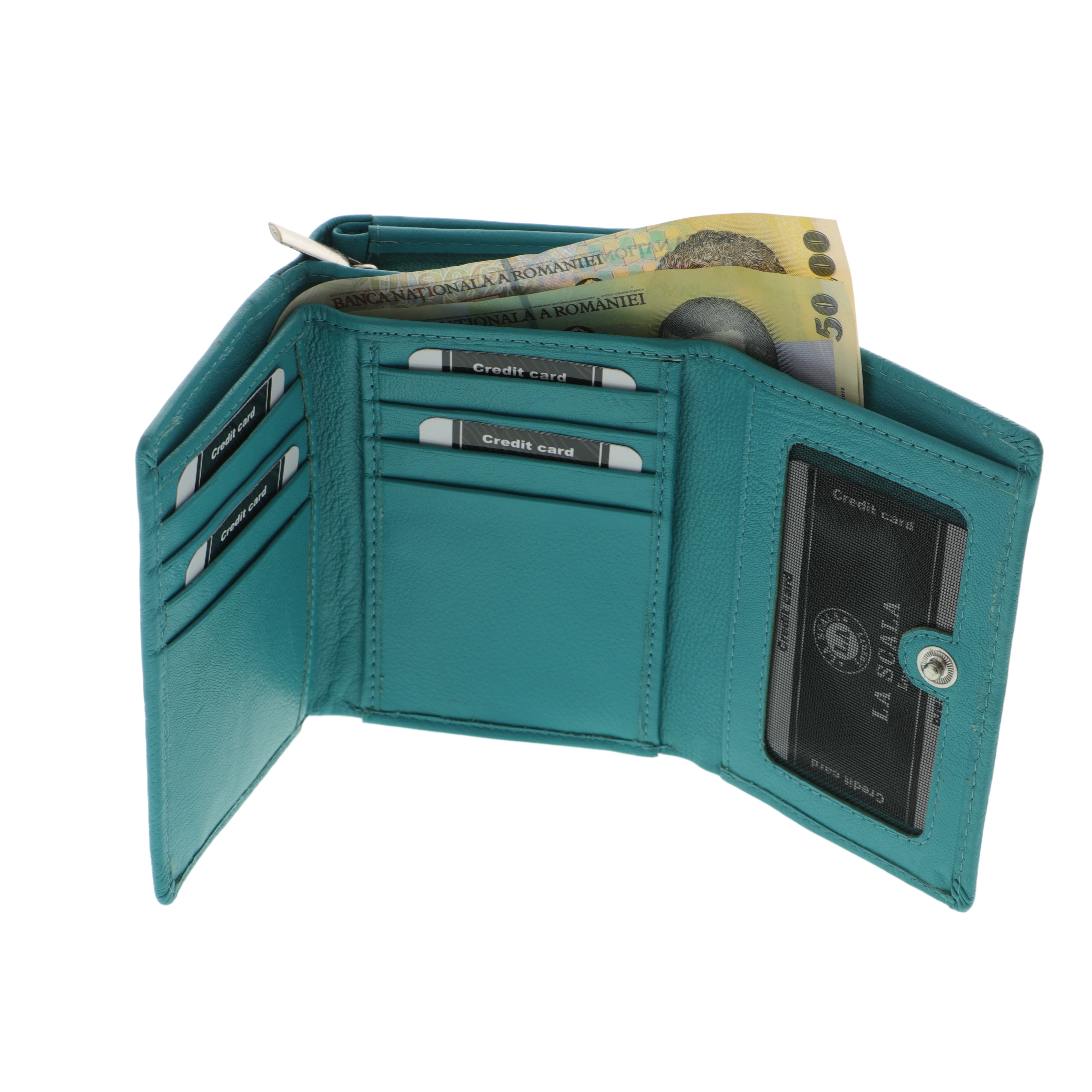 Portofel dama turcoaz piele naturala La Scala 18cm