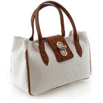 Poseta din piele naturala, realizata in Italia, de culoare alb-maro. Pielea prezinta la atingere mici denivelari. Compartimentul principal se inchide si cu fermoar in interior si este impartit de un buzunar. In interior, pe lateral gasiti un buzunar mic pentru accesorii. Puteti purta poseta si pe umar, cu ajutorul baretei detasabile de 1m. Dimensiuni: 17cm h, 29cm h(cu manere) 27cm L si 13cm l.