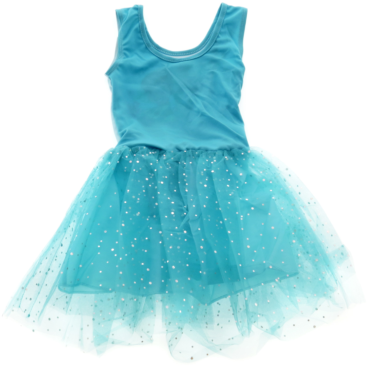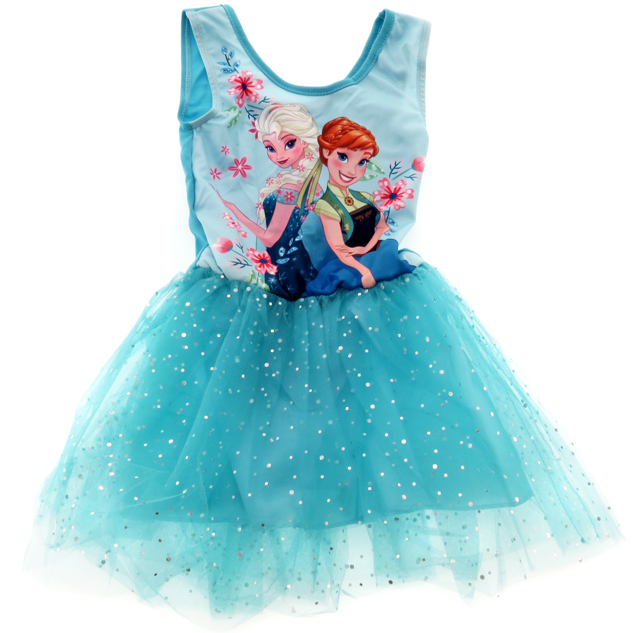 Rochita speciala de balet, cu chilotei, si mai multe randuri de tul, care se invart spectaculos la piruete. Rochita este fabricata dintr-un material special, elastic, care se muleaza perfect pe corp, fara a jena in vreun fel. Imprimeul le reprezinte pe cele doua surori, Elsa si Anna din Reghatul de Gheata, Frozen.