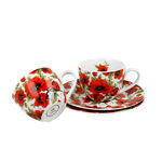 Setul cu 2 căni și 2 farfurii din portelan alb, decorate cu delicate flori roșii de maci, este o alegere elegantă și rafinată pentru iubitorii de cafea sau espresso. Fiecare piesă este atent lucrată și finisată, aducând o notă de eleganță la orice moment al zilei.
