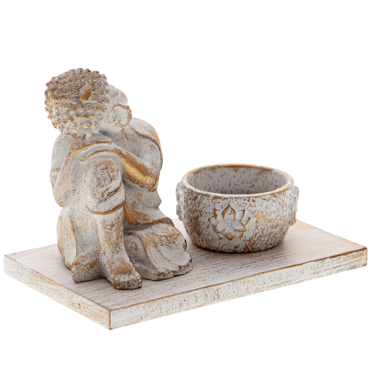 Set aromaterapie cu figurina Shiva. Setul este compus din 3 piese, o figurina, un suport pentru o lumanare de tip pastila si un suport pe care sunt asezate. Dimensiuni: 8,5x13x9 cm