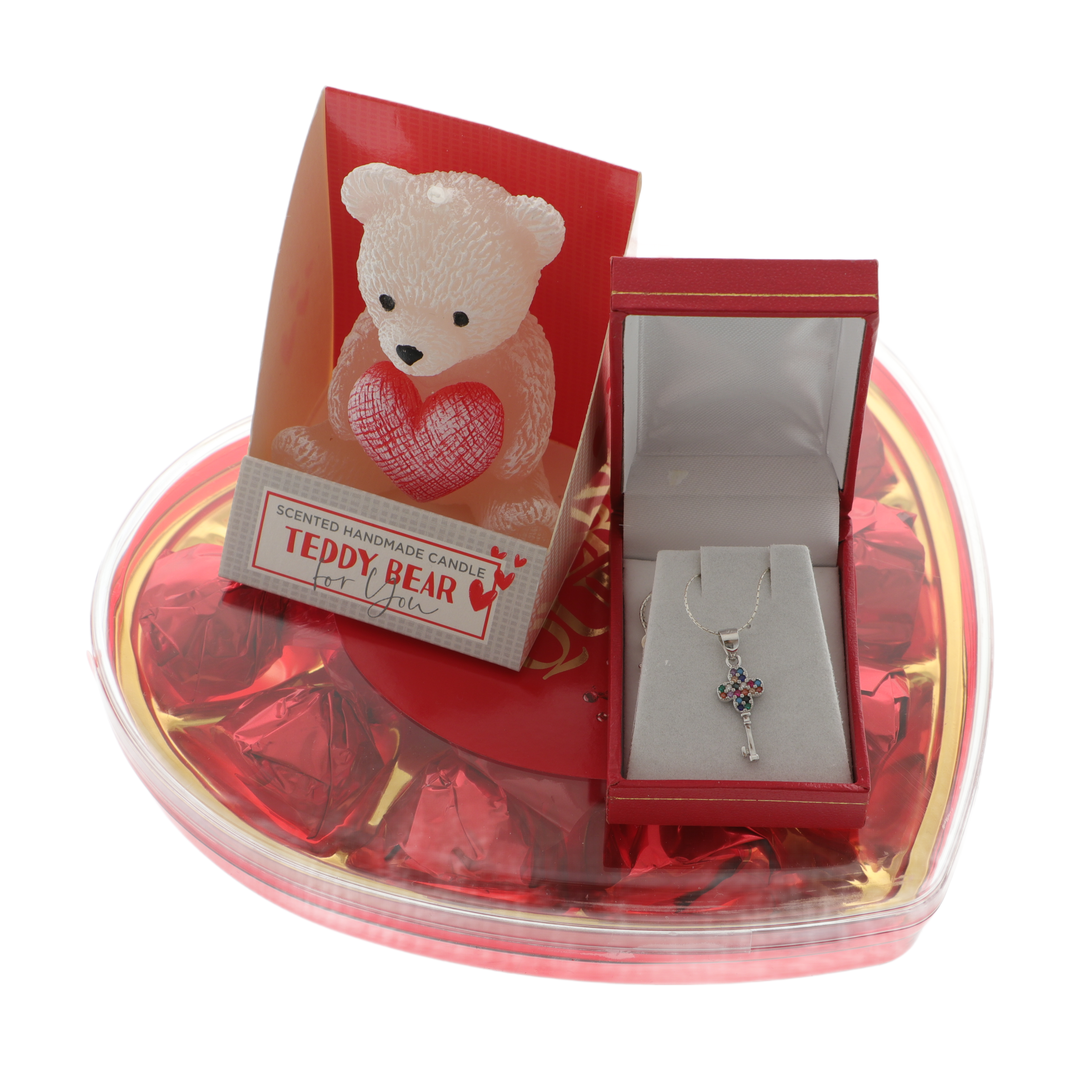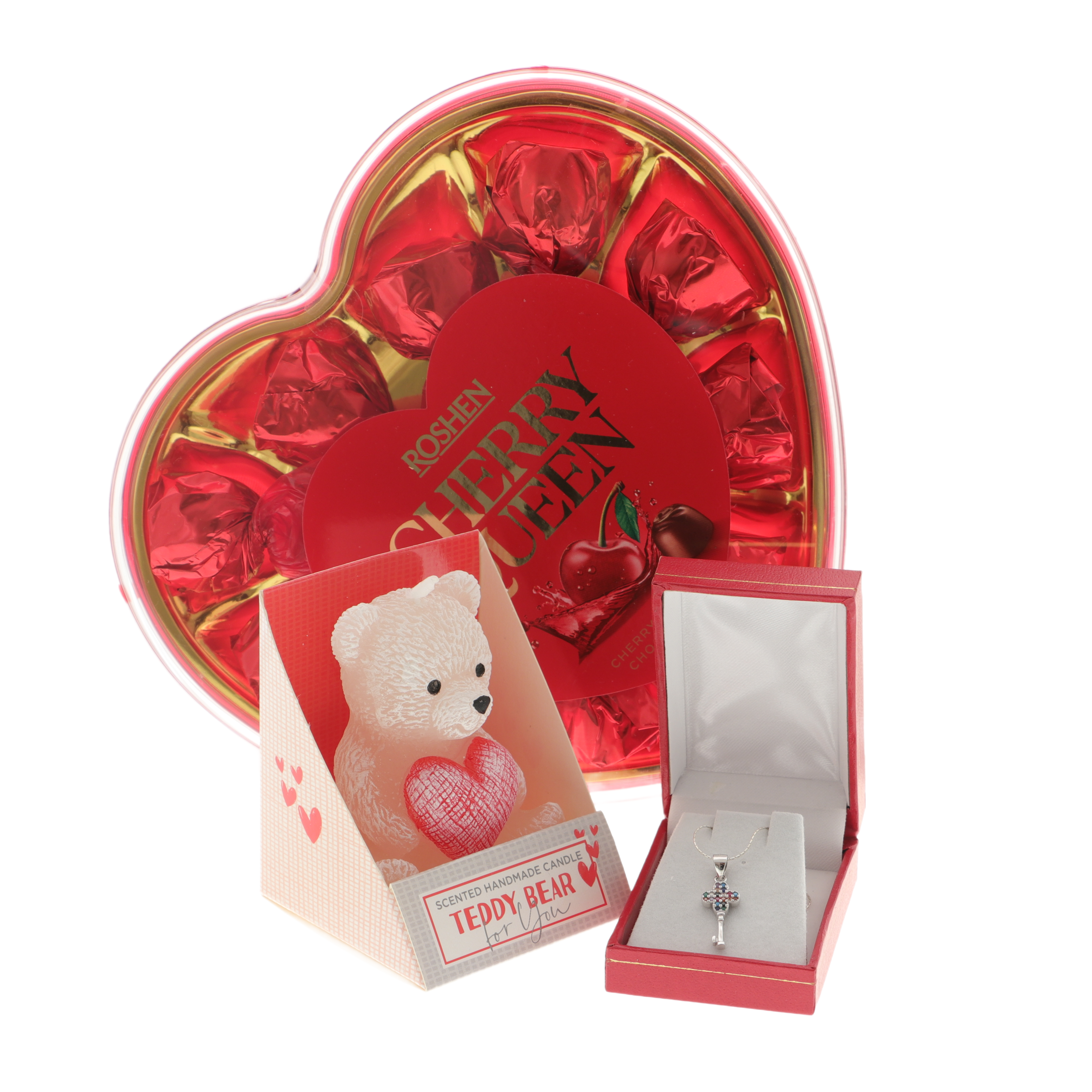 Setul cadou cu bijuterie din argint 925, praline de ciocolată și lumânare ursuleț este alegerea perfectă pentru a surprinde o persoană specială cu un cadou rafinat și memorabil.