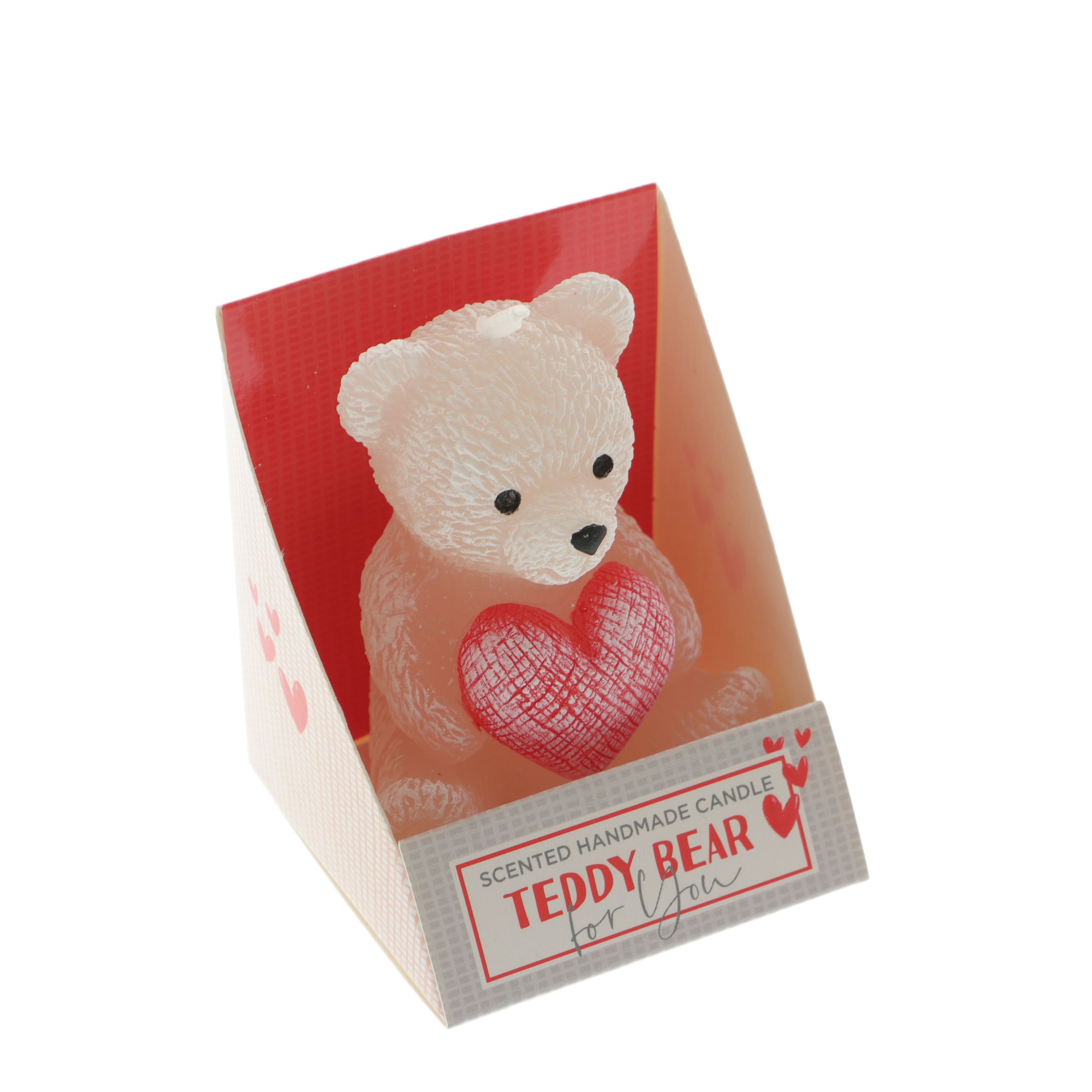 🕯️ Lumânare elegantă în formă de ursuleț, care ține o inimă roșie în brațe – un detaliu romantic ce completează perfect setul.
