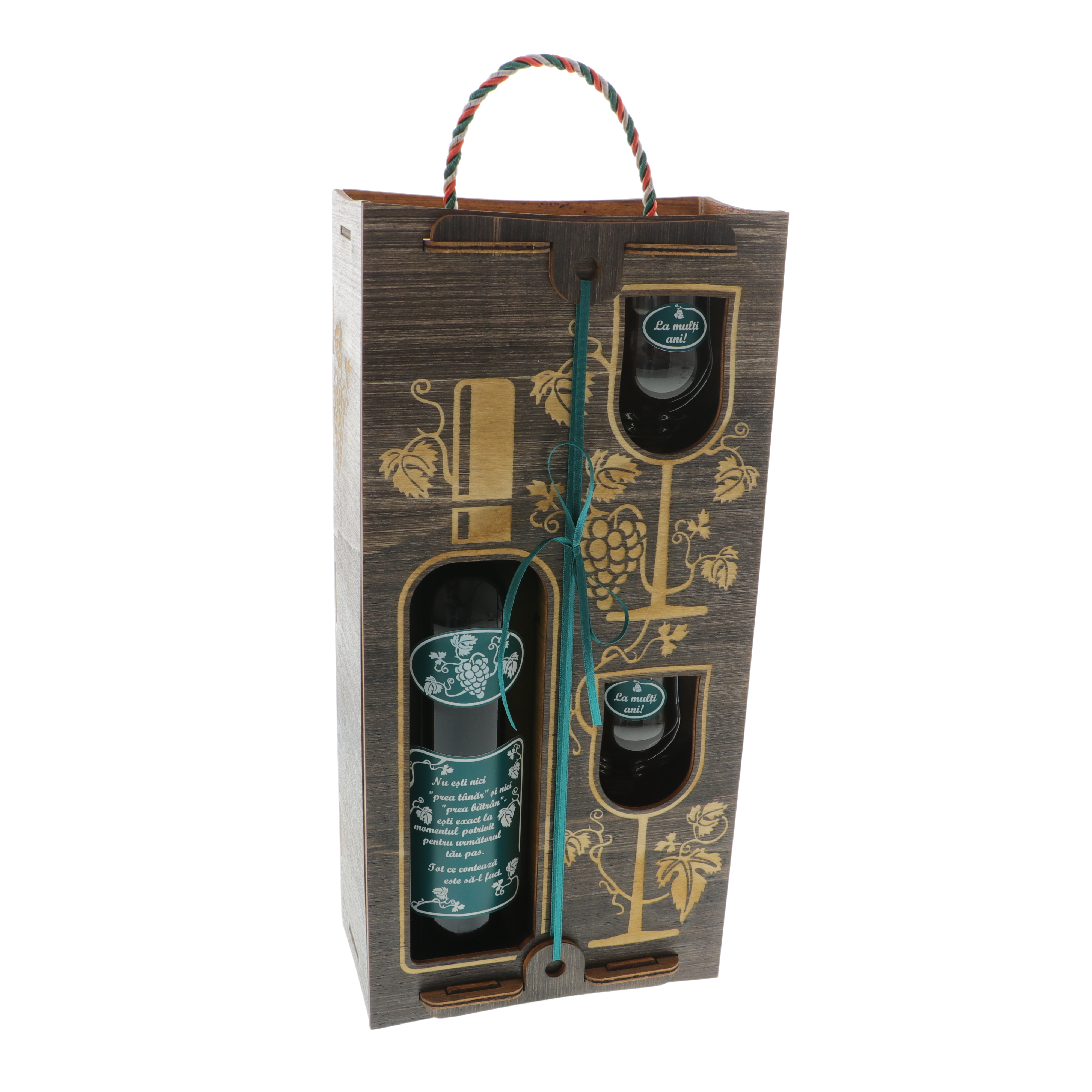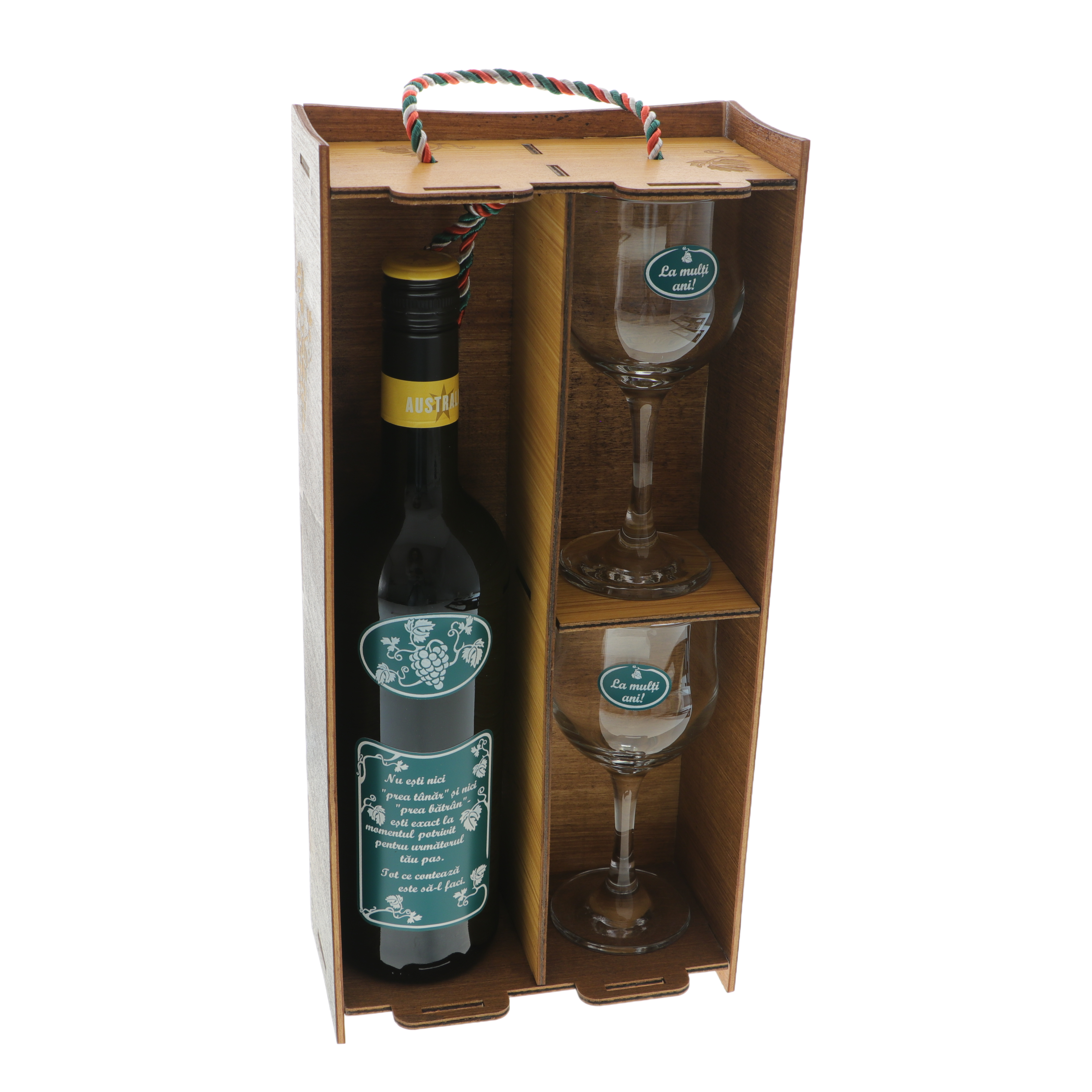Mesajul de pe sticla de vin poate fi personalizat la cerere, ceea ce transformă acest set într-un cadou unic și memorabil, adaptat perfect oricărei ocazii sau persoane dragi.