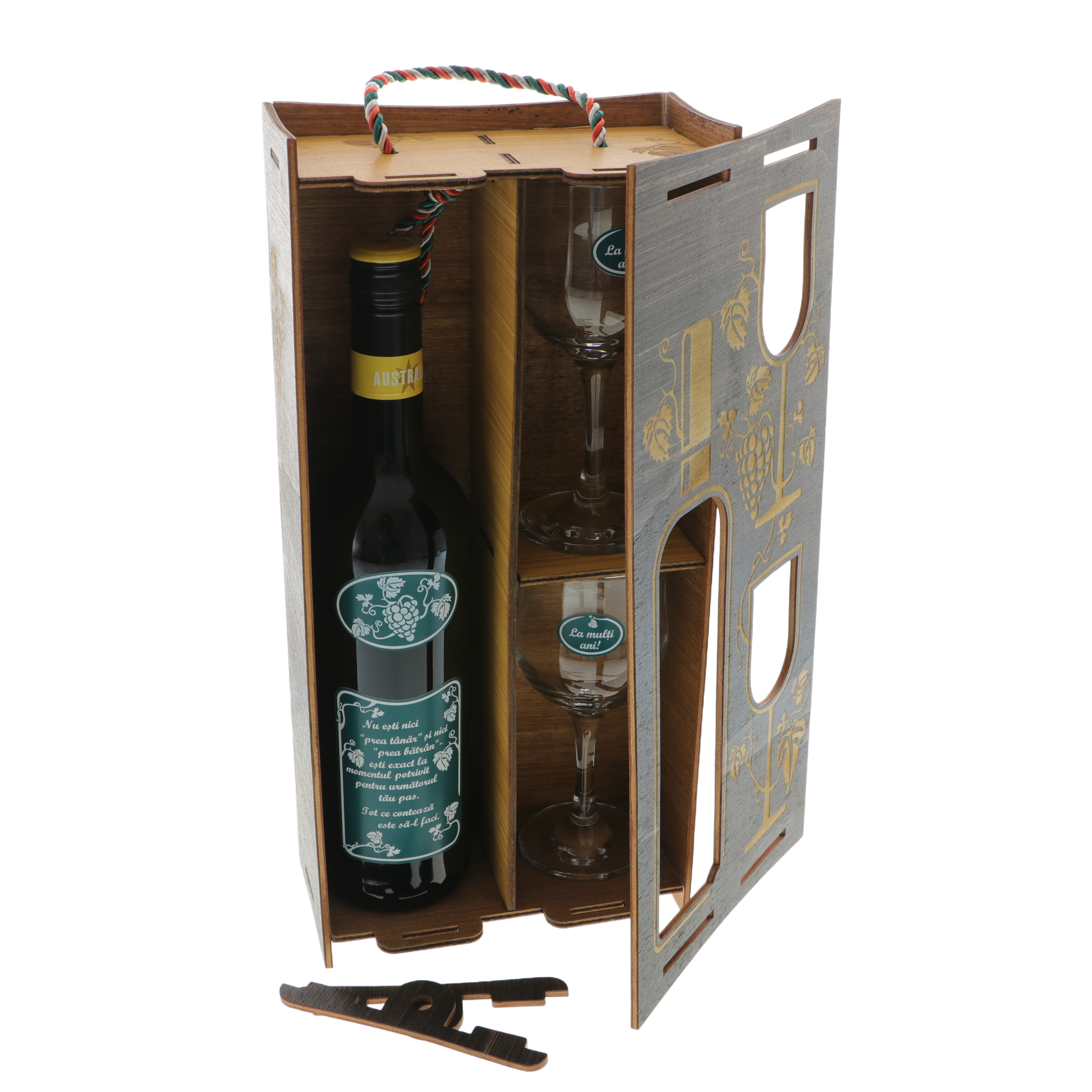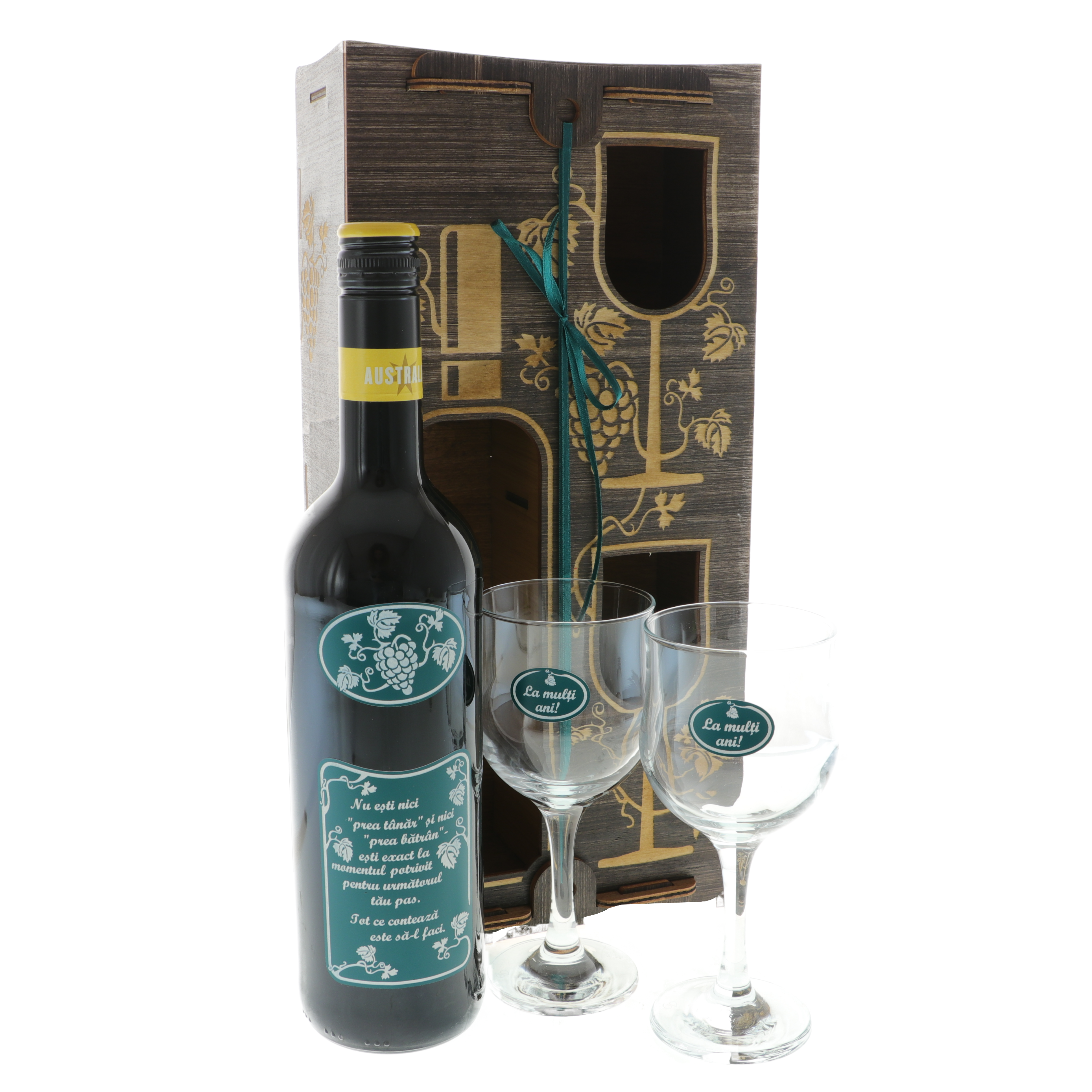 Set cadou Varsta vin personalizat cu pahare cutie lemn