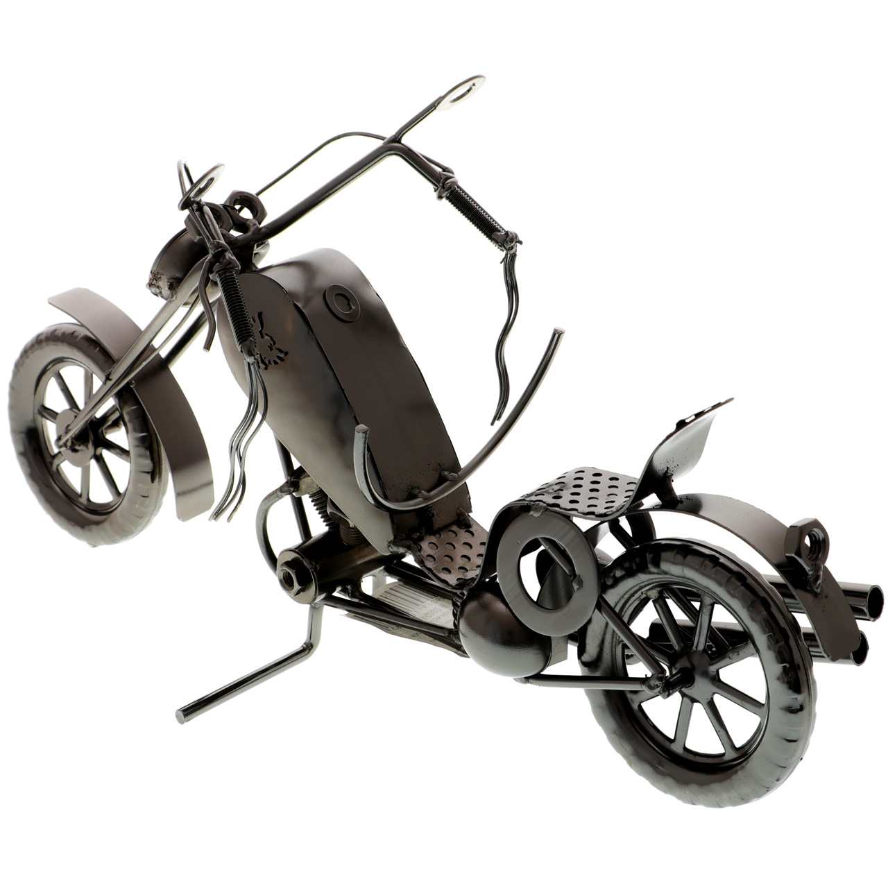 Set cadou motocicleta realizata din metal alaturi de o sticla de vin rosu. Motocicleta tine sticla de vin in pozitie inclinata. Vinul este unul rosu, Priciar, Special Reserve, Feteasca Neagra, sec, 750 ml. Motorul poate purta un scurt mesaj gravat prin aplicarea unei placute pe rezervor. Dimensiuni: 19x36 cm.