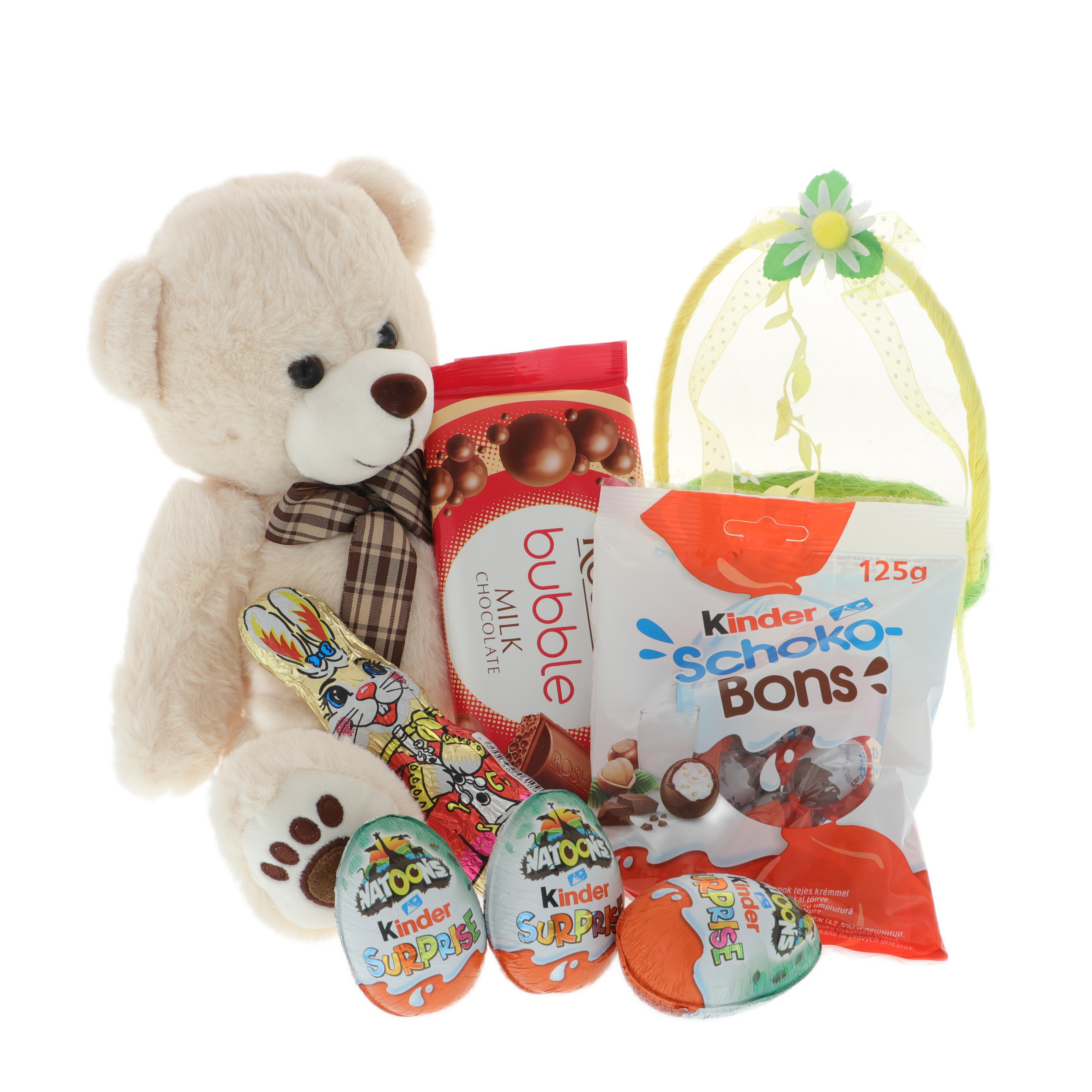 Setul cadou "Easter Teddy Bear" este alegerea perfectă pentru a aduce bucurie și zâmbete în inimile copiilor în timpul sărbătorilor pascale. Cu un design adorabil și dulciuri delicioase, acest set va fi cu siguranță o surpriză încântătoare pentru cei mici.
