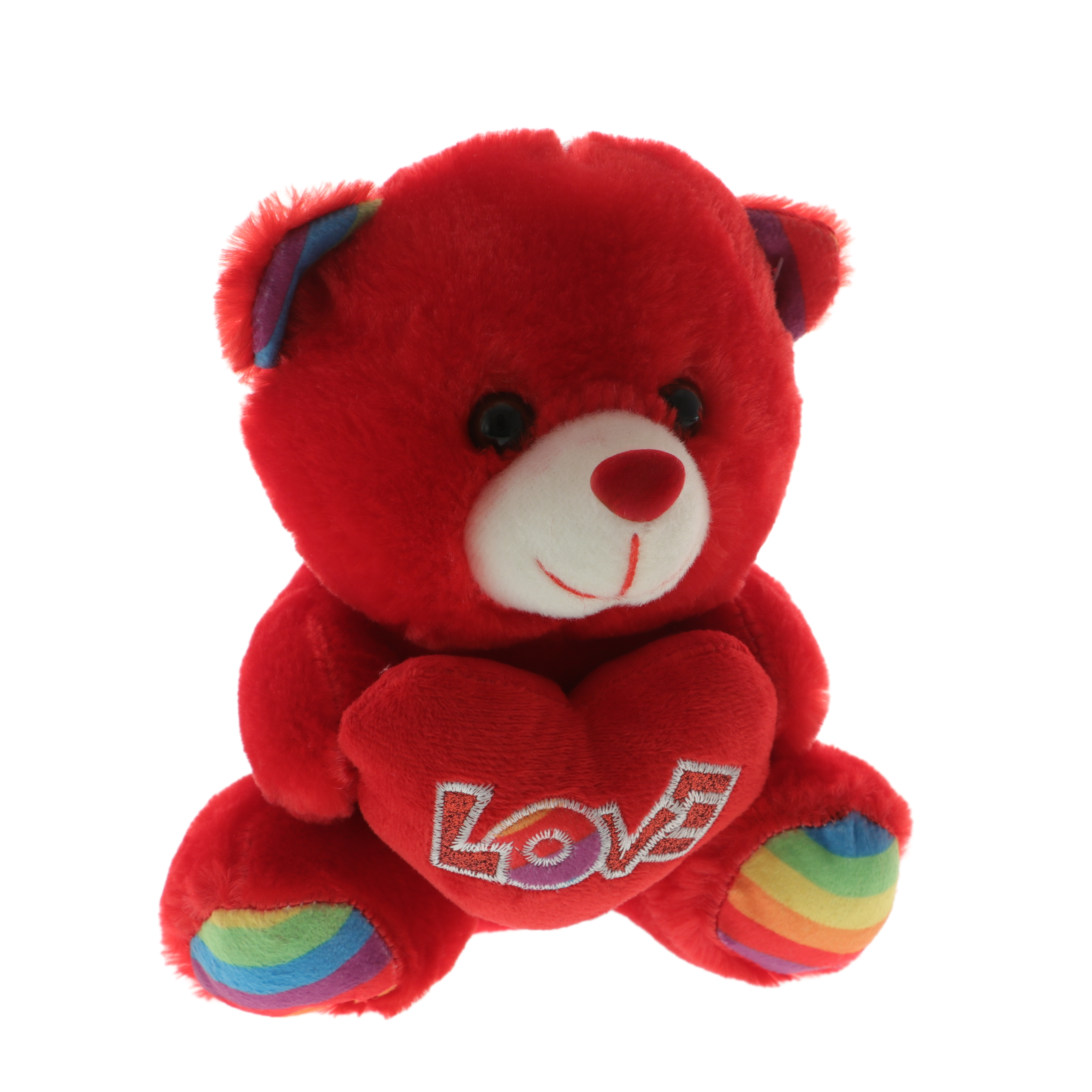 un ursuleț de pluș roșu, simbol al afecțiunii, care ține o inimă în brațe