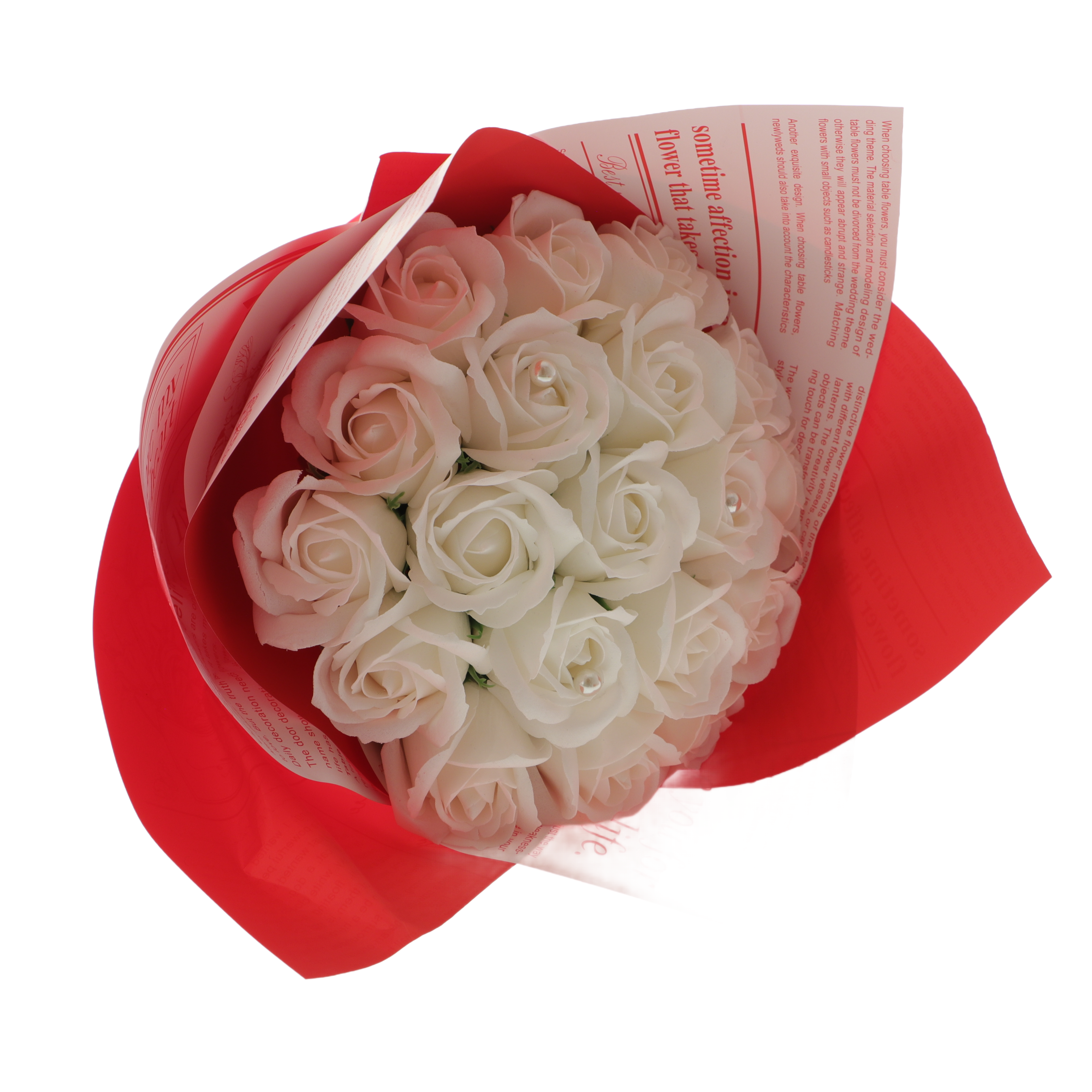 un buchet elegant din 19 trandafiri albi realizați din săpun, cu aspect rafinat și durabil