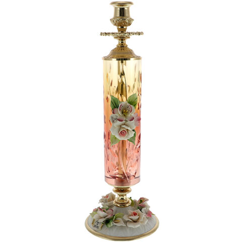 Sfesnic pentru o lumanare din gama Luxurious Bouquet, un superb cadou de lux realizat din sticla de murano, metal placat cu aur de 24K si portelan prelucrat manual. Produsul este realizat in Italia, iar buchetele florale aplicate sunt realizate si montate petala cu petala. Sfesnicului i se potriveste o lumanare conica, inalta. Dimensiuni: 12x12x35.