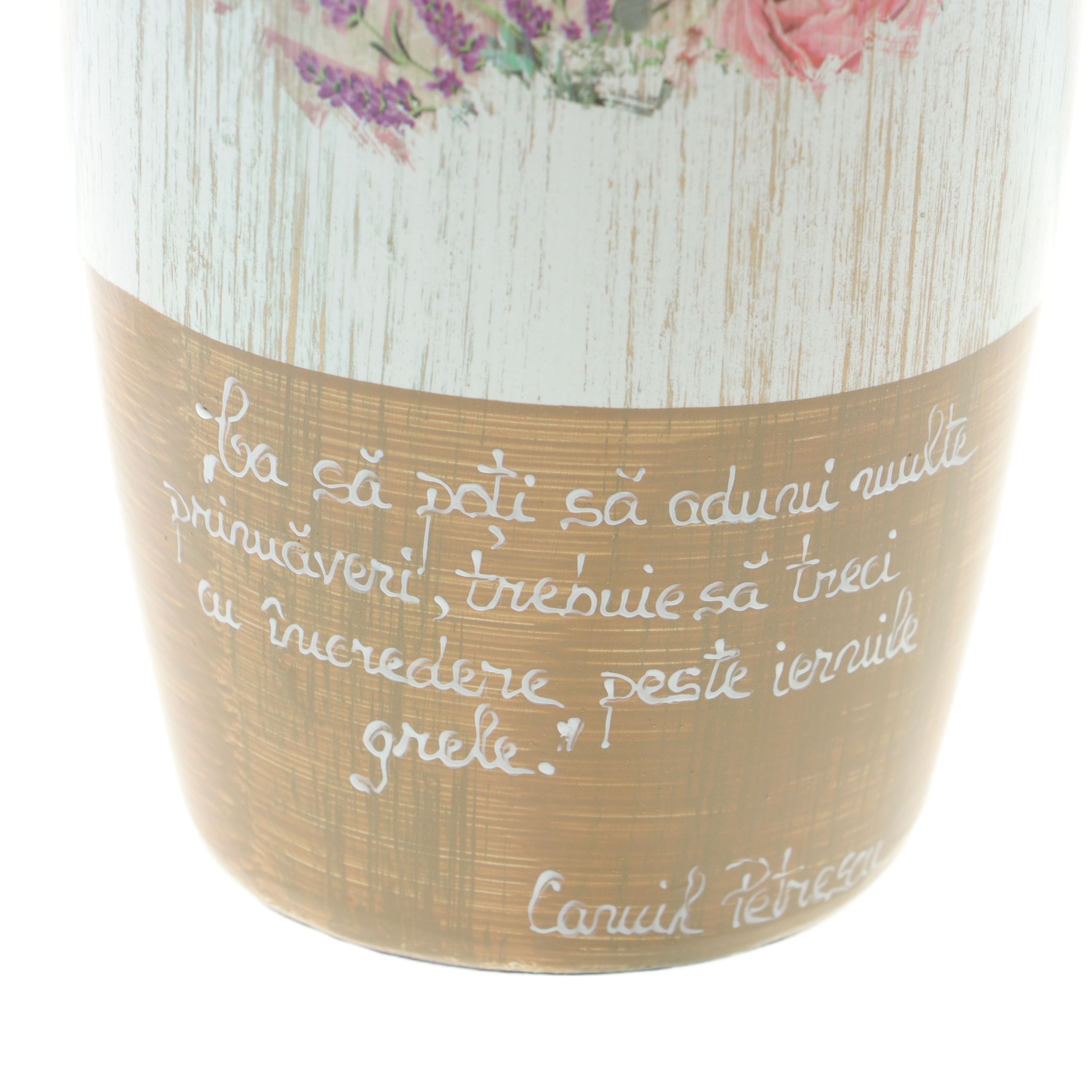 Vază ceramică pictată – Trandafiri roz & mesaj motivațional personalizabil